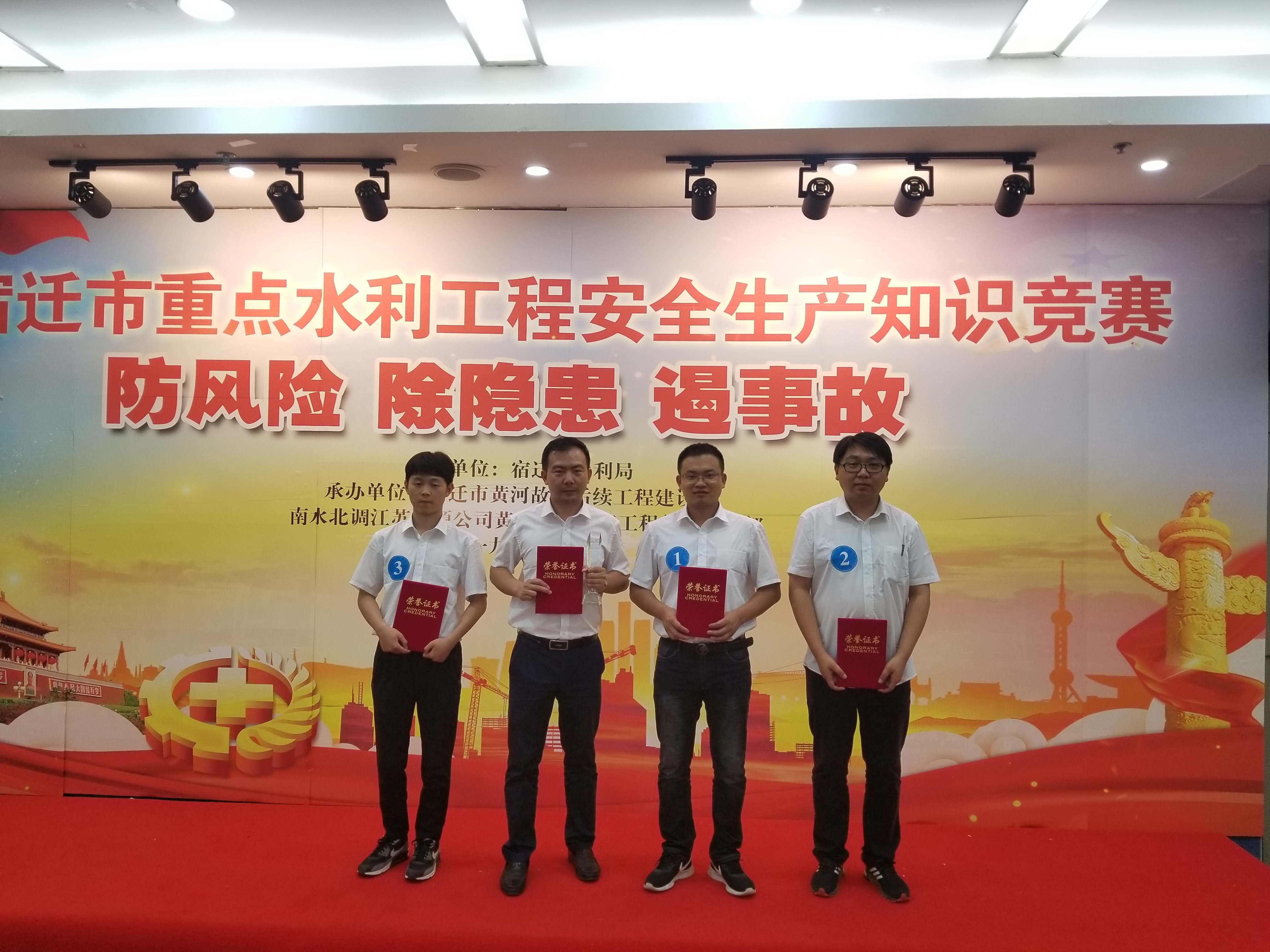 为深入推进安全生产月活动开展,普及安全生产法律知识,提高安全生产意识,筑牢安全生产防线,宿迁市水利局组织开展了“宿迁市重点水利工程安全生产知识竞赛”活动。我九游足球宿迁市黄河故道后续工程施工3标项目经理部派出代表队经海选、初赛、复赛多轮角逐,代表九游足球参加了总决赛,经过激烈角逐,以优异的成绩荣获第二名,展示了九游足球职工的良好风采。