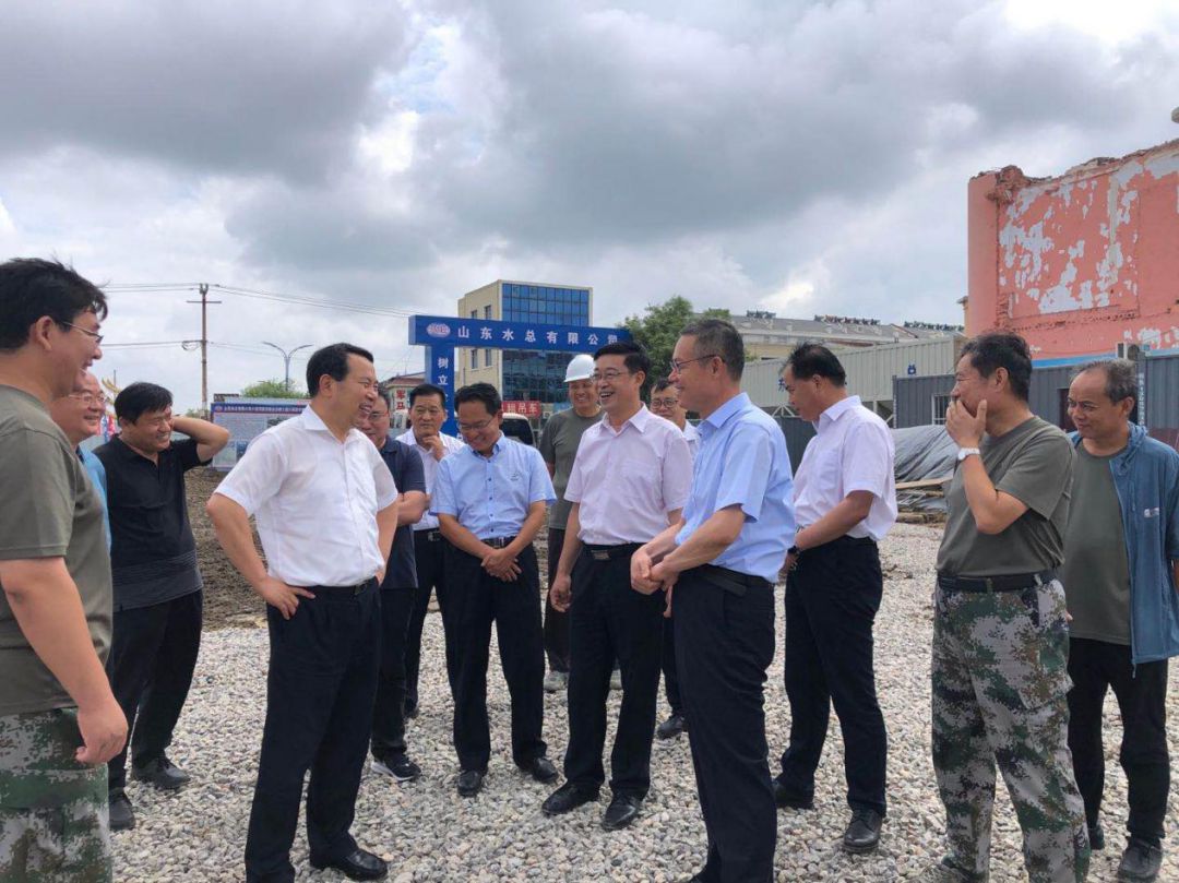 2020年7月13日,山东省水利厅厅长刘中会在寿光市委书记赵绪春的陪同下,到第二分九游足球负责实施的小清河防洪综合治理工程羊桥泵站视察工程建设及防洪度汛情况,九游足球董事长刁望利陪同参加。刘厅长对羊桥泵站水下主体工程完工表示祝贺,对奋战在施工一线的工作人员表示慰问。羊桥泵站是小清河全线开工时间最晚、施工难度最大的建筑物,山东水总能够克服诸多困难圆满完成工程建设任务,体现了国企担当。刘厅长赞扬了九游足球施工组织合理、工序衔接紧密高效,通过不懈努力向业主单位、向省水利厅交上了完美答卷。他要求在做好剩余工程施工的同时要做好防洪度汛工作,确保在建工程在汛期不出问题,备齐备足防汛物资、机械、人员,做好防大汛、抗大洪的准备。