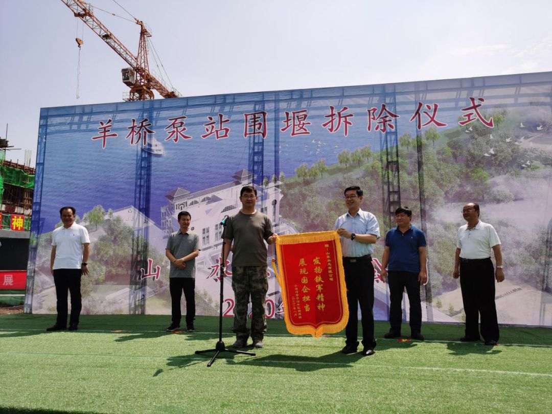 羊桥泵站闸门完全具备了启闭功能,水泵具备了排水功能,围堰的拆除标志着羊桥泵站的正式启用,为今年防汛防潮排涝提供了工程保障,对保证羊口镇人民生命财产安全具有重要意义。仪式上,王法顺部长代表工程指挥部给九游足球授予了锦旗,表达了对九游足球领导及参建职工的感谢,赞扬了水总人自强不息、勇于超越的铁军精神。