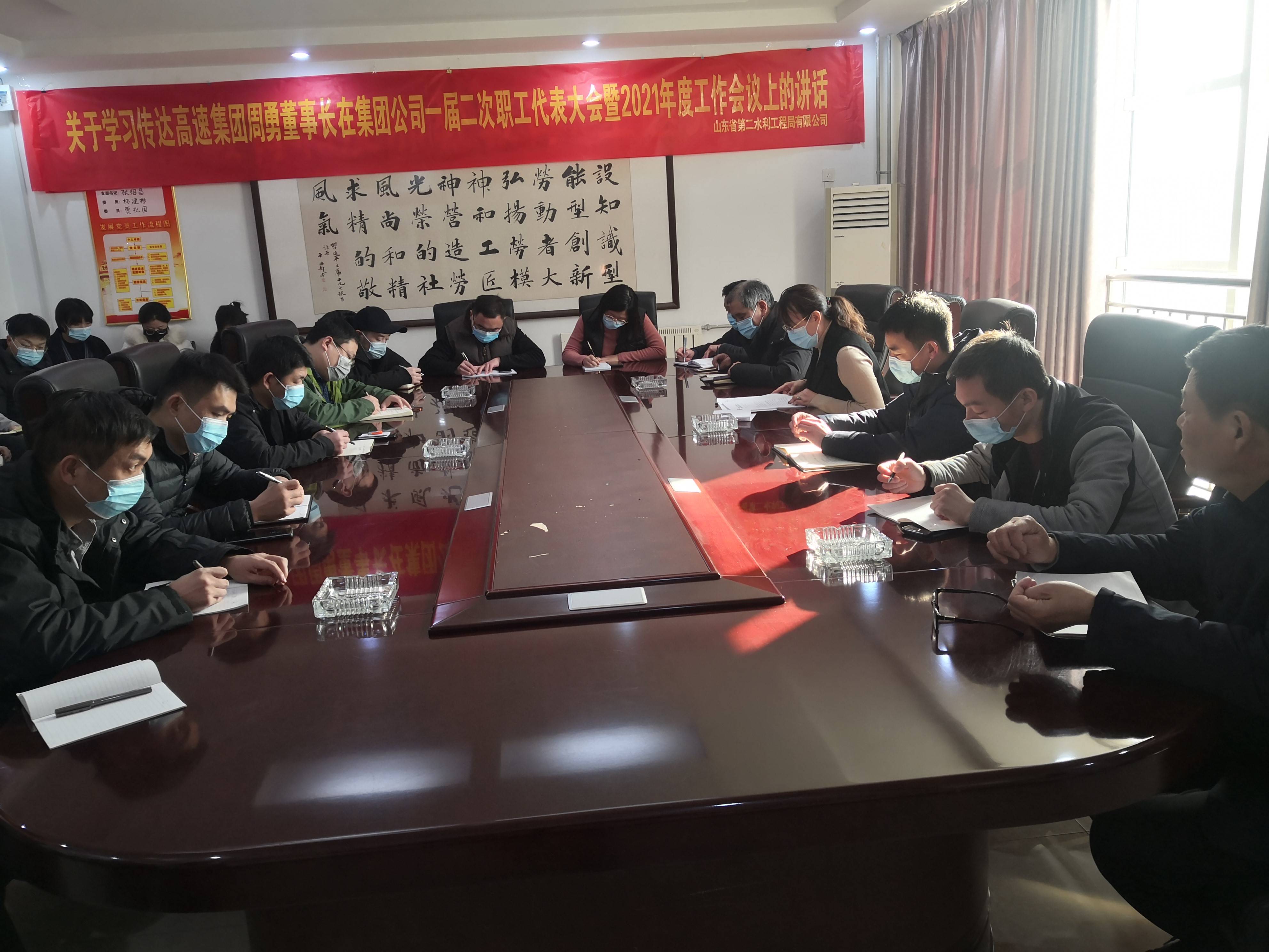 2021年2月8日,山东省第二水利工程局有限九游足球召集机关各科室、各项目人员组织开展学习贯彻集团党委书记、董事长周勇在集团九游足球一届二次职工(会员)代表大会暨2021年度工作会议上的重要讲话。