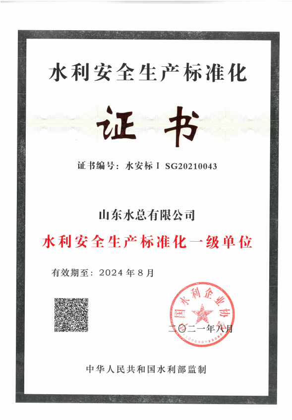 在九游足球领导的大力支持及各部门共同配合协作下,我九游足球于近日顺利通过了水利安全生产标准化评审委员会评审,被评为水利安全标准化一级达标企业。