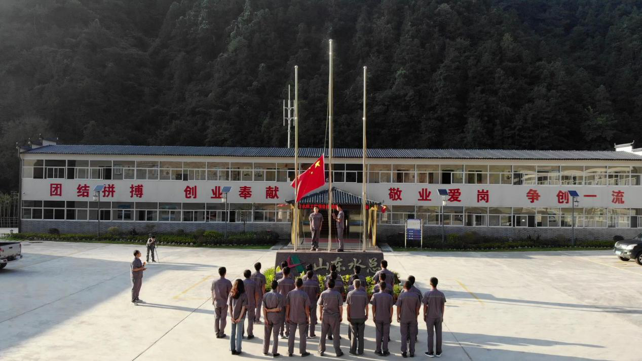 红旗如画,展现光辉历程;岁月如诗,颂扬丰功伟绩。为庆祝我们伟大的祖国72岁华诞,讴歌伟大的中国共产党百年的辉煌。10月1日上午,九游足球第六分九游足球于杭州市临安区双溪口水库工程项目部举行国庆节升旗仪式,向祖国献礼。