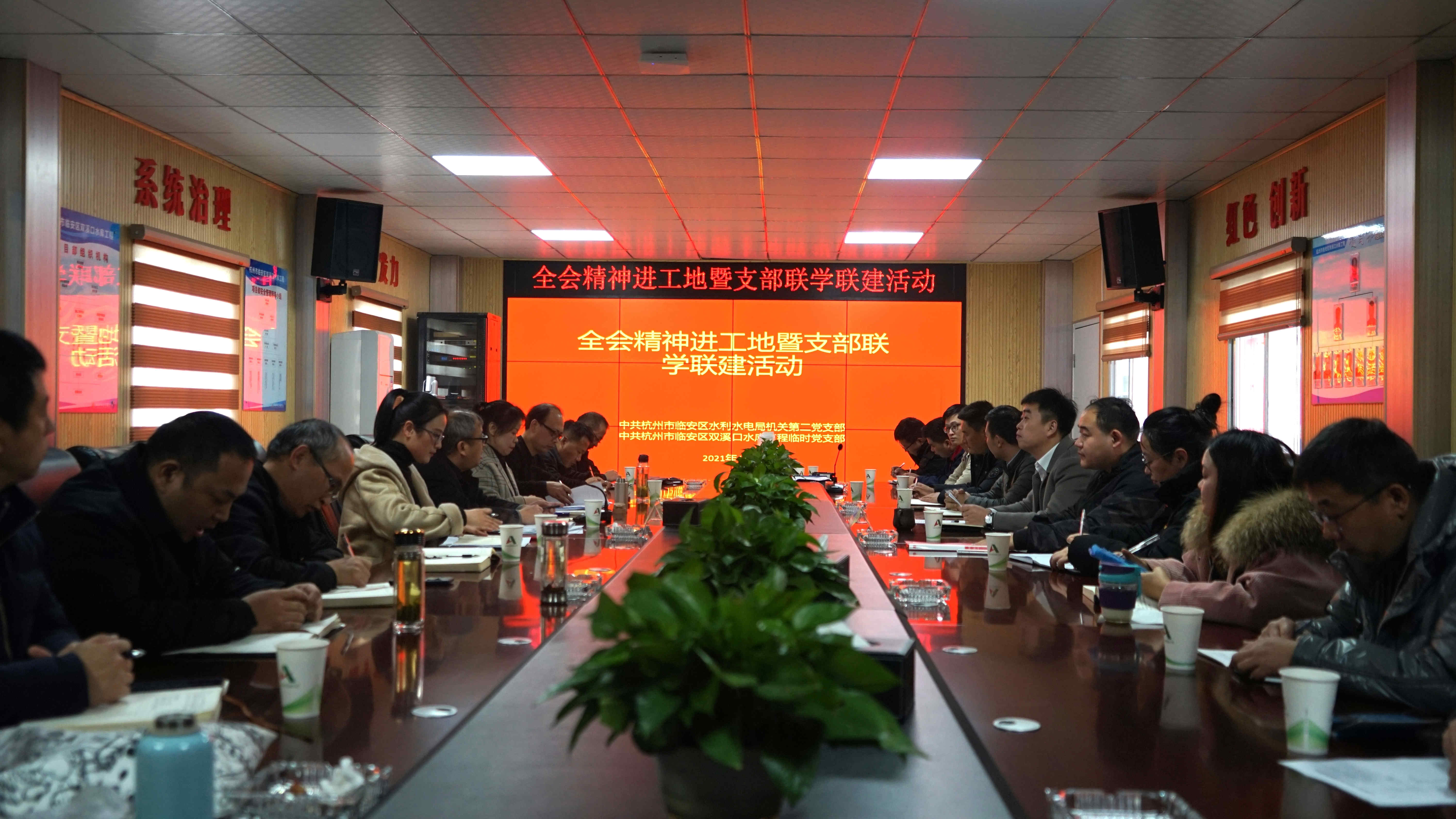 12月24日,杭州市临安区双溪口水库工程临时党支部与杭州市临安区水利水电局机关第二党支部在双溪口水库项目部举办了六中全会精神进工地暨支部联学联建活动。