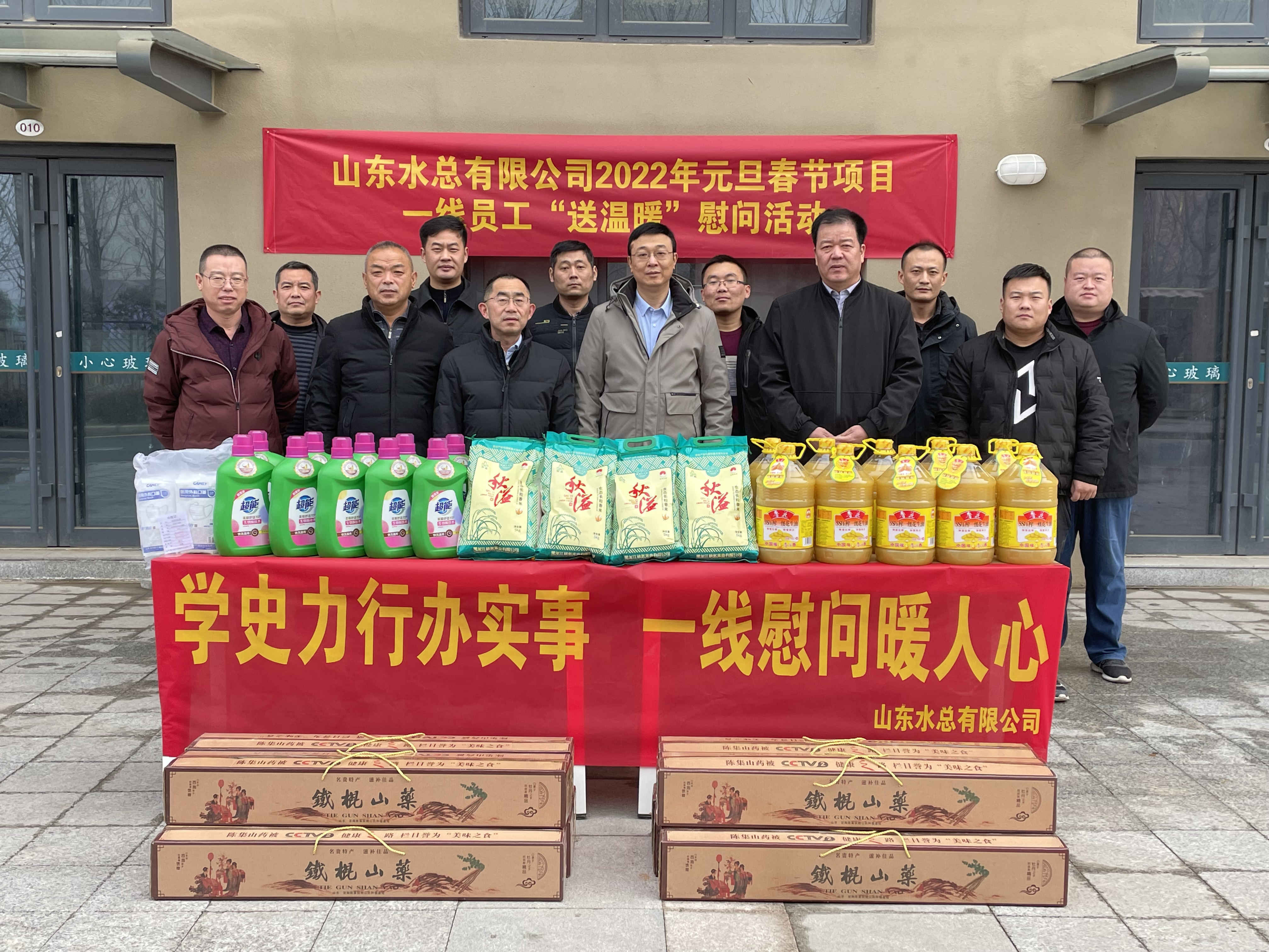 声声问候暖人心,句句祝福表关爱。 1月6日,九游足球党委委员、副总经理袁英杰、总会计师杨利军及综合办公室主任张辉一行来到菏泽市职业教育园区项目建设工地现场,走访慰问元旦期间坚守岗位的一线职工,把水总党委、工会的节日问候和新年祝福送到职工身边。