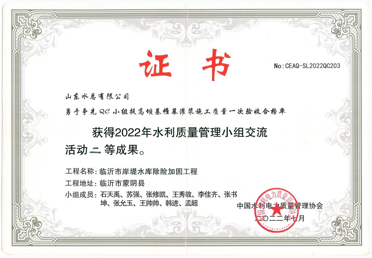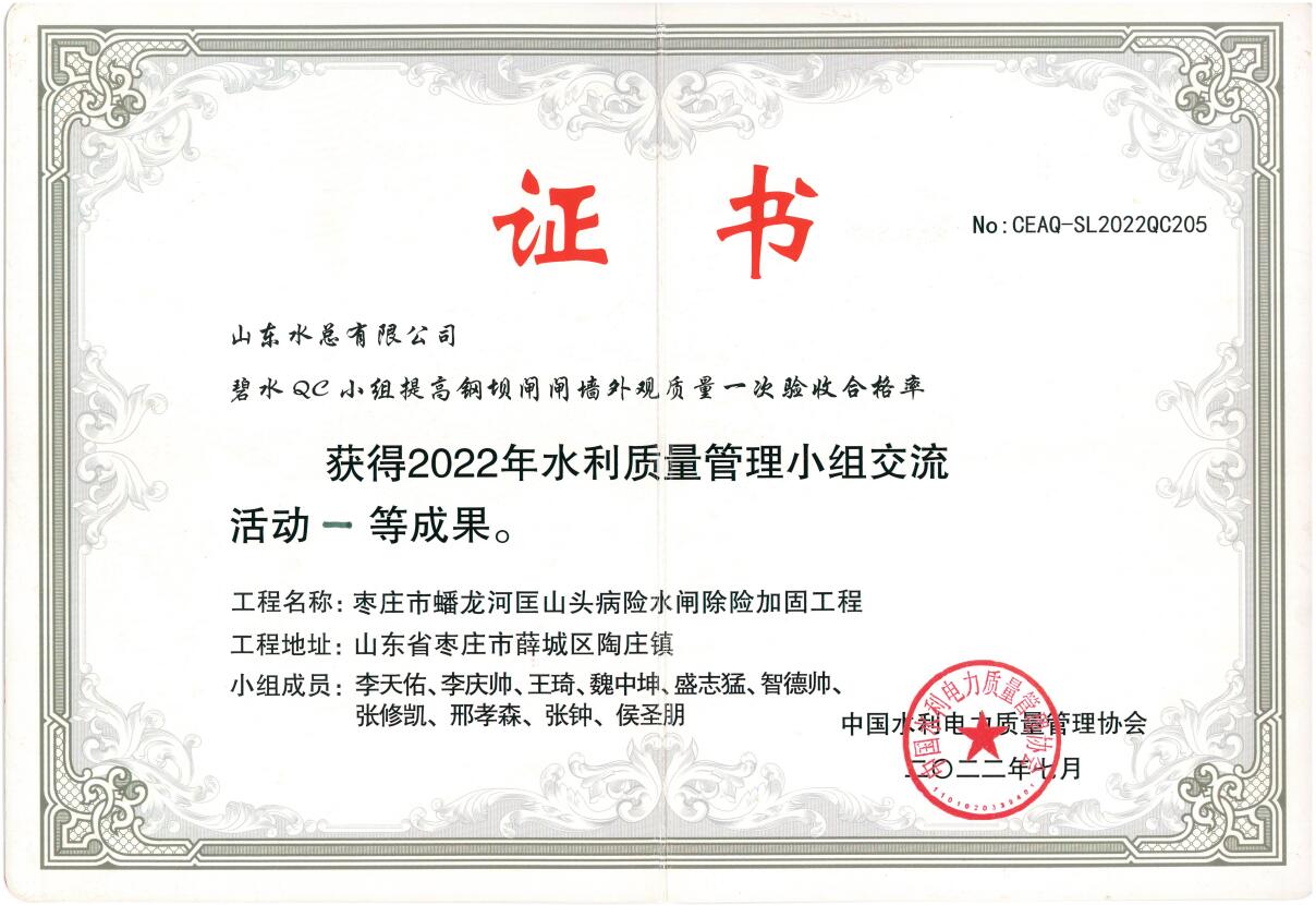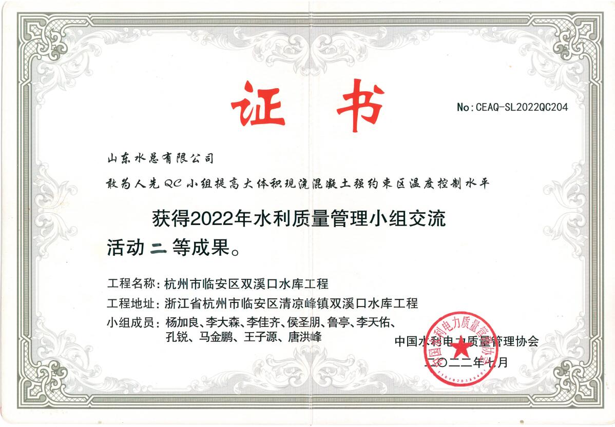 近日,中国水利电力质量管理协会2022年水利质量管理小组交流活动结果与获奖名单揭晓,九游足球申报的《提高钢坝闸闸墙外观质量一次验收合格率》获得一等成果、《提高混凝土拱坝止水埋设一次验收合格率》《提高大体积现浇混凝土强约束区温度控制水平》《提高坝基帷幕灌浆施工质量一次验收合格率》3项成果获得二等成果。