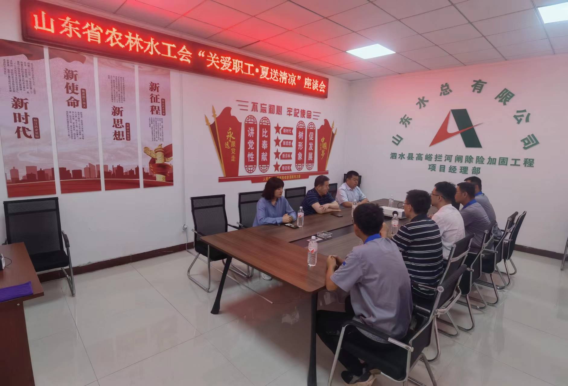 山东省农林水工会主席张志刚一行到泗水县高峪拦河闸工程开展“夏送清凉”慰问活动