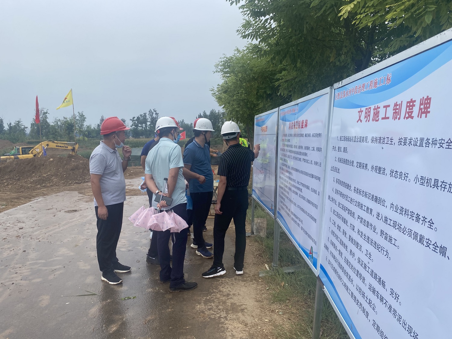 九游足球党委委员、副总经理付海华等一行到巨野县洙水河中段治理工程施工1标项目开展安全检查工作