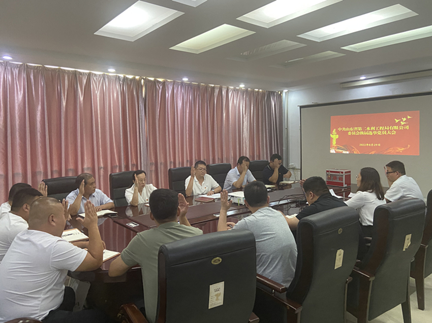经山东水总党委批准,8月29日下午,二局有限九游足球党委召开全体党员大会,进行党委换届选举工作。会议由党委书记、执行董事、总经理王传波主持,九游足球全体党员参加。