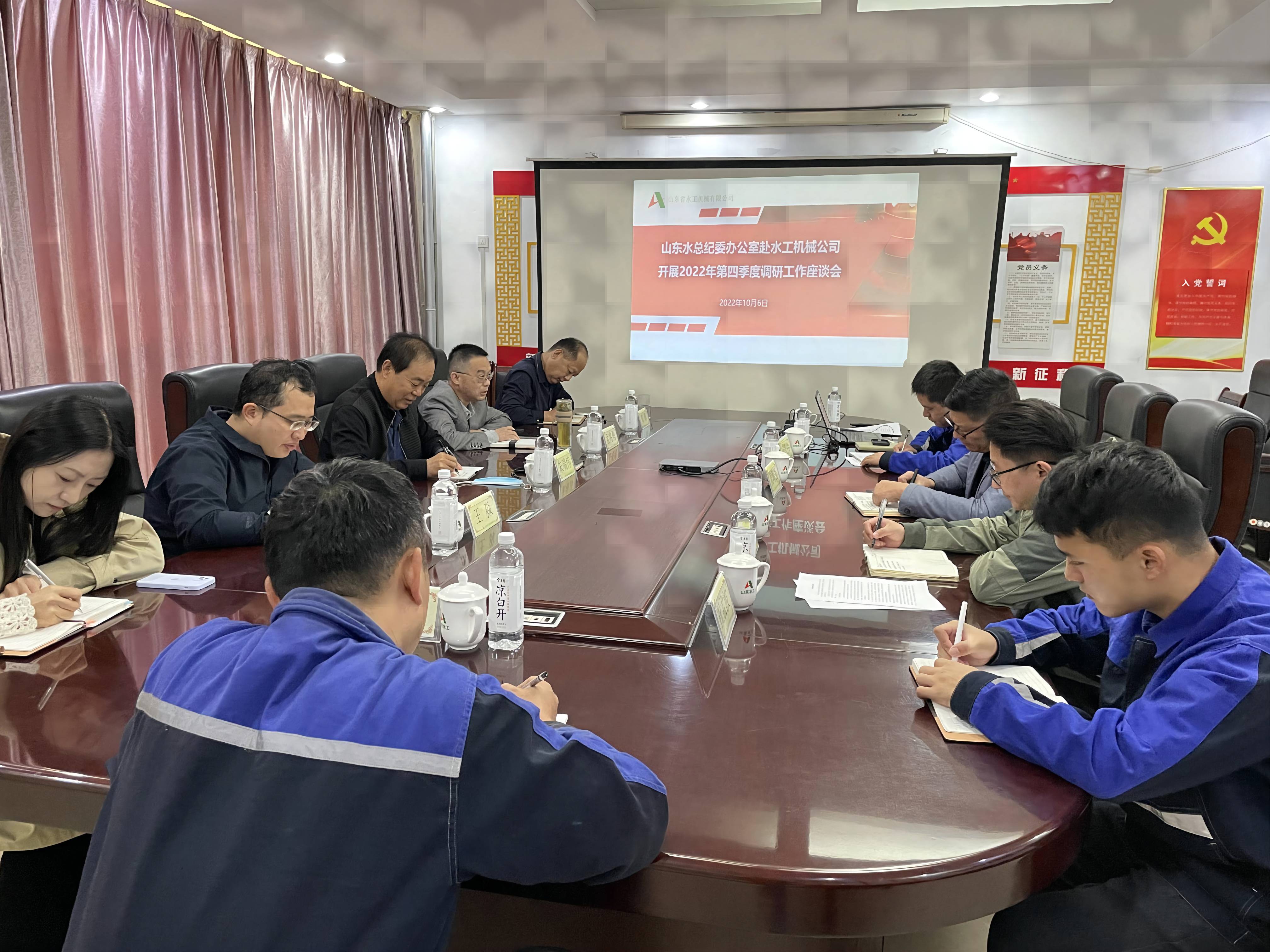 10月5日,调研组首先在水工机械九游足球三楼召开座谈会,听取水工机械九游足球机料采购、废料处理、成本控制等情况汇报,以及九游足球在各项工作中遇到的难题及下一步工作措施,对有关问题给予现场指导。调研组指出,九游足球目前各项任务还十分艰巨,面对错综复杂的形势和艰巨繁重任务,要深入贯彻上级党委的总体要求,坚决落实集团九游足球的各项决策部署,动员全体干部职工,积极应对安全环保、生产经营、产品质量“三重”大战大考,坚定信心、攻坚克难、苦干实干。随后,调研组一行实地查看生产车间,了解项目进展,认真检查现场安全生产落实情况,听取职工诉求和意见建议。