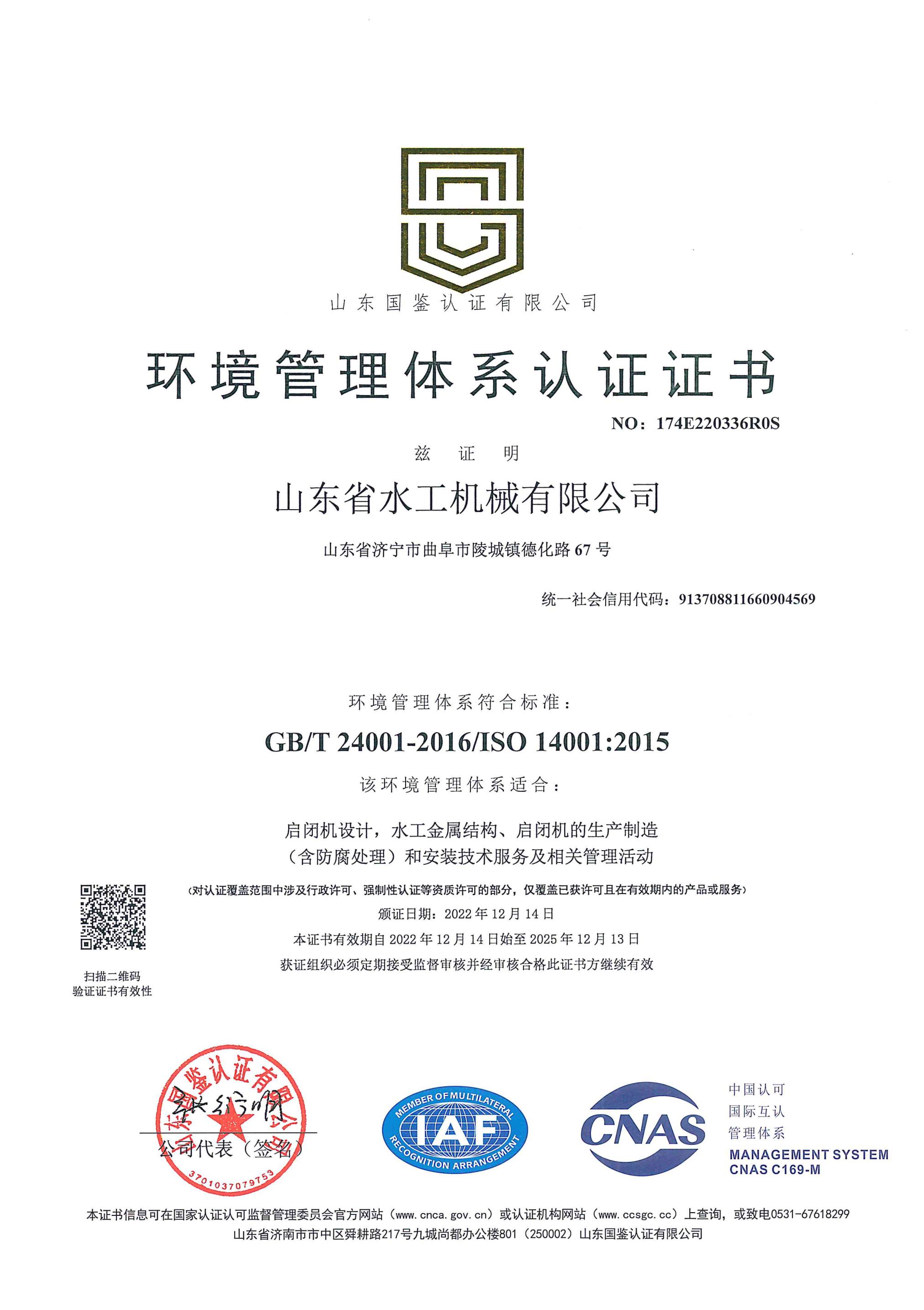 12月22日,水工机械九游足球顺利通过质量、环境、职业健康安全管理体系重新认证审核。