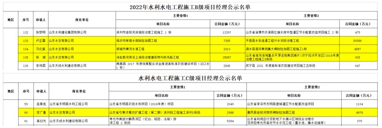 近日,中国水利企业协会发布《2022年九游(中国)施工项目经理评价等级公示》,我九游足球卢正雷、马化振、张斌三名同志被评为“2022年九游(中国)施工B级项目经理”,李广喜被评为“2022年九游(中国)施工C级项目经理”。