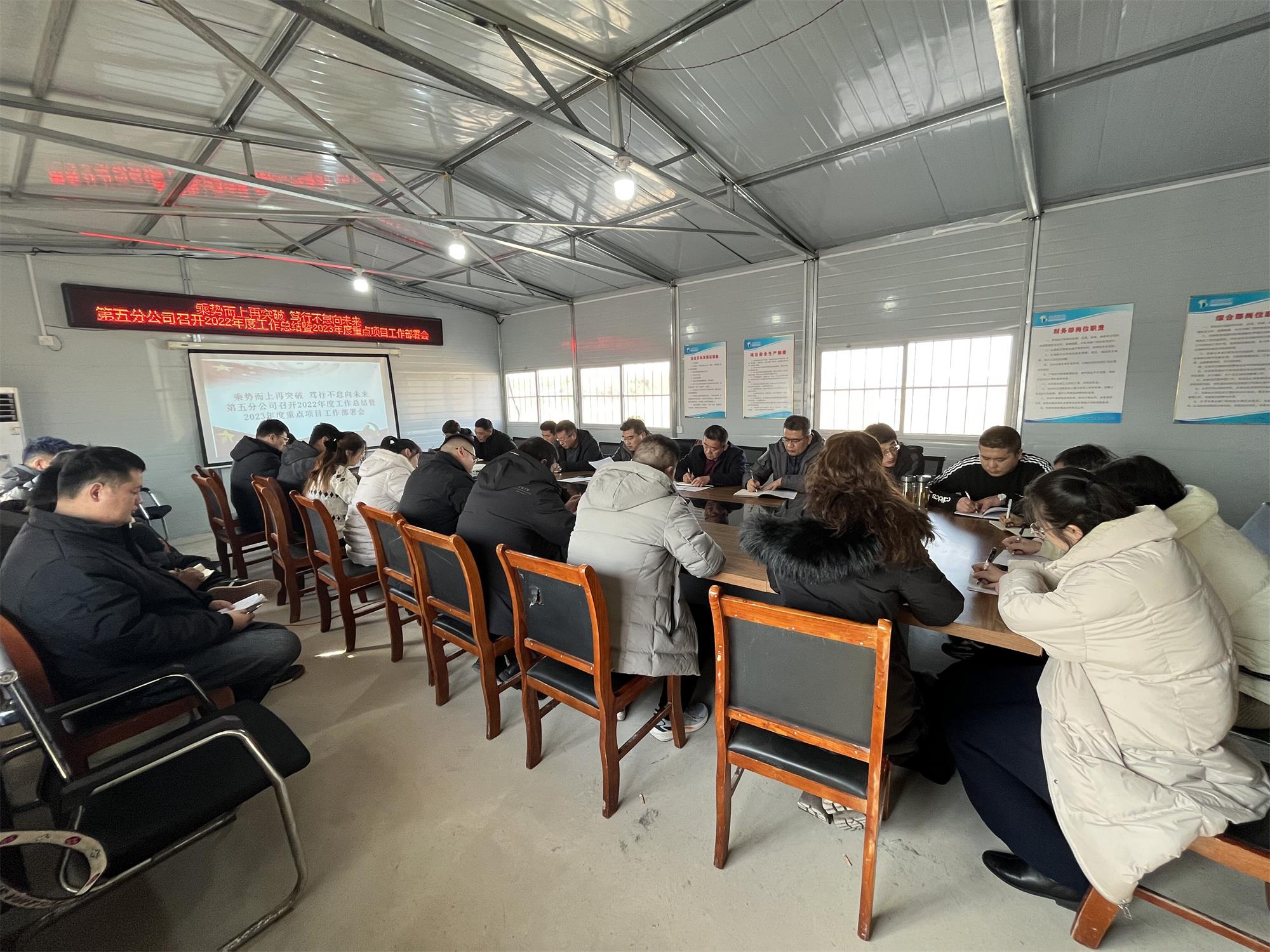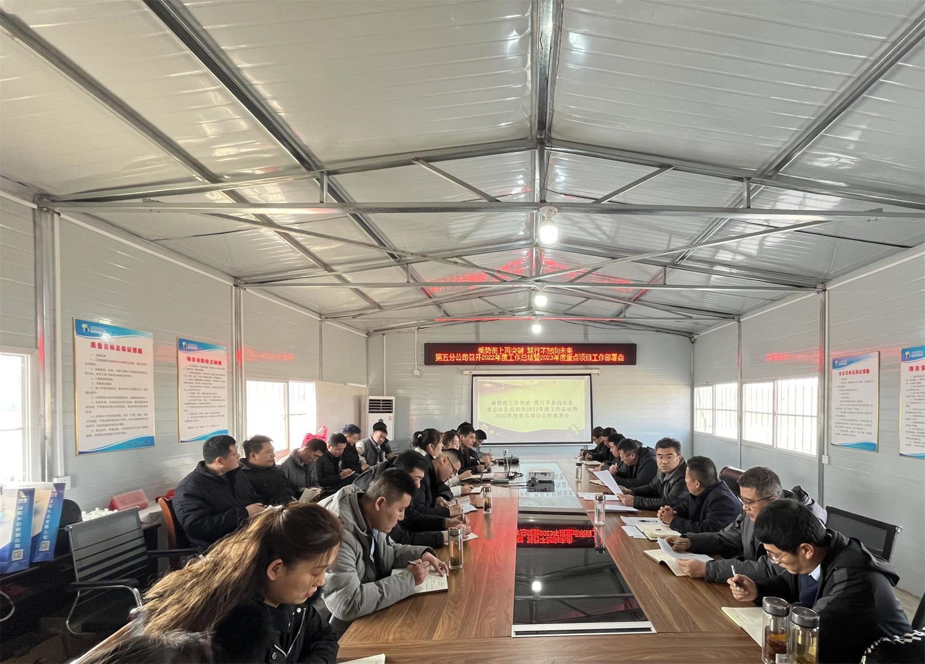 1月30日,第五分九游足球在无棣黄瓜岭项目部召开2022年度工作总结暨2023年度重点项目工作部署会议,上好“开工第一课”。九游足球在鲁职工参加会议,会议由党支部书记、总经理蔡国森主持。