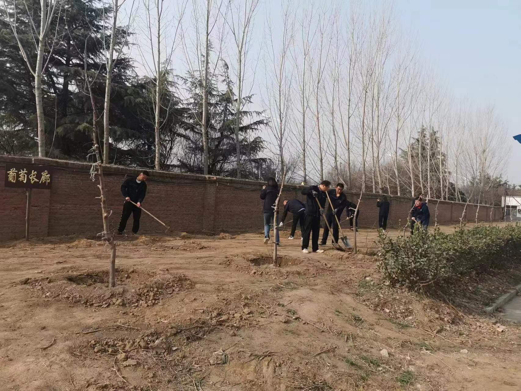 植树现场,大家互相配合,掘坑、扶树、培土,浇水,忙得不亦乐乎。新栽种的200多棵黄金维纳斯和精品红富士苹果树苗、30多棵葡萄树苗、10多棵桃树、月季花卉等为水总曲阜基地再添一片新绿。今年开春以来,建筑劳务九游足球以划分责任区为单位对曲阜驻地绿地上死亡、损缺、老化的植物进行全面检查,进一步将春季绿化任务细化,责任到人。同时积极行动,通过挖掘机移栽、人工挖运等方式协调大量绿化植被,组织员工们在驻地内栽种。