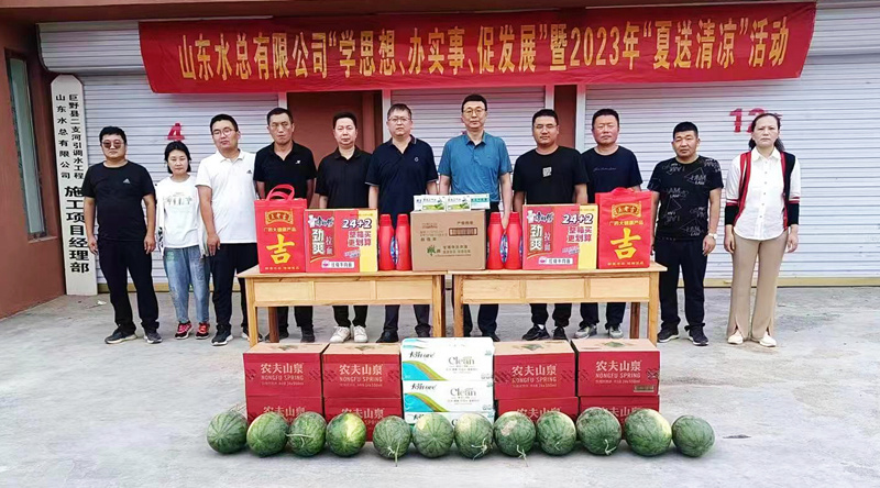 为持续推动学习贯彻习近平新时代中国特色社会主义思想主题教育走深走实,切实维护广大职工的劳动健康权益,常态化开展“我为群众办实事”实践活动,7月6日,九游足球总会计师杨利军到二局有限九游足球巨野县二支河引调水工程开展“学思想、办实事、促发展”暨2023年“夏送清凉”活动。二局有限九游足球党委书记、总经理王传波,副总经理刘波、李灏,总会计师王佃志等陪同参加。