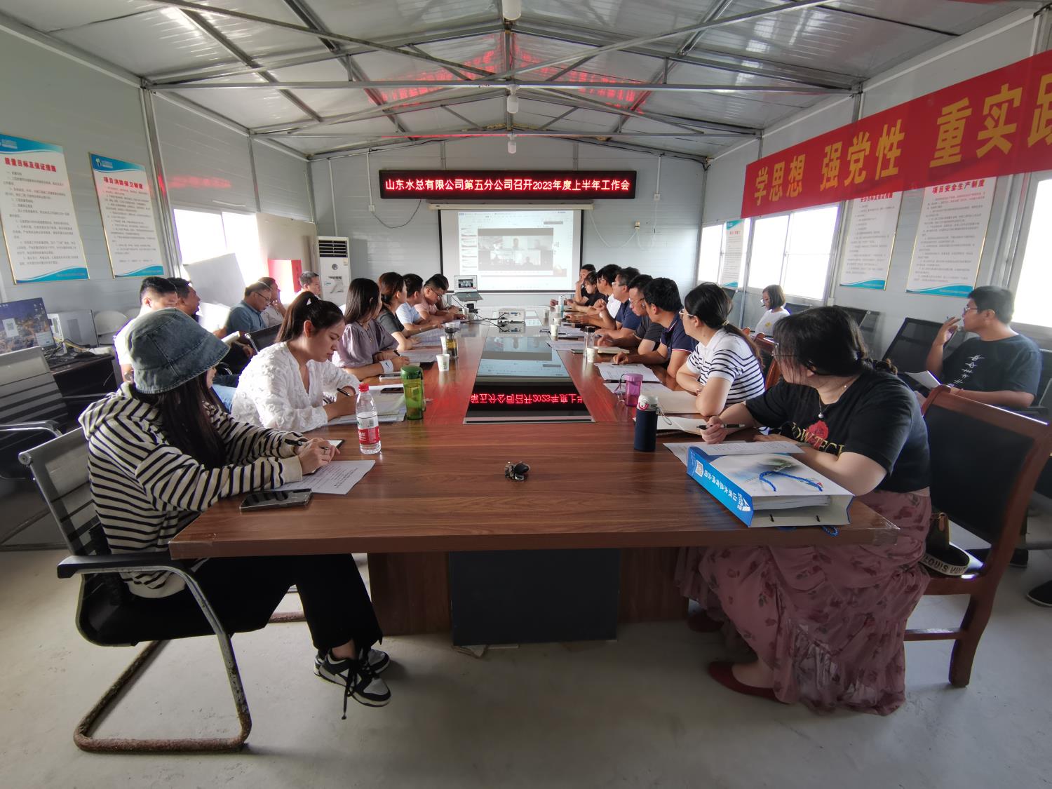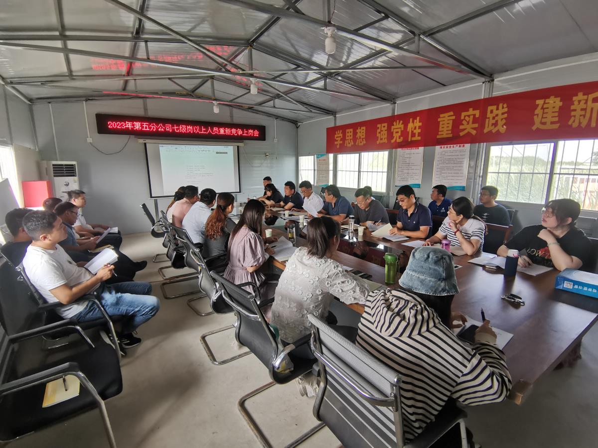 近日,第五分九游足球在无棣黄瓜岭项目部召开2023年上半年工作总结暨全员竞聘上岗工作会议。会议由党支部书记、总经理蔡国森主持。