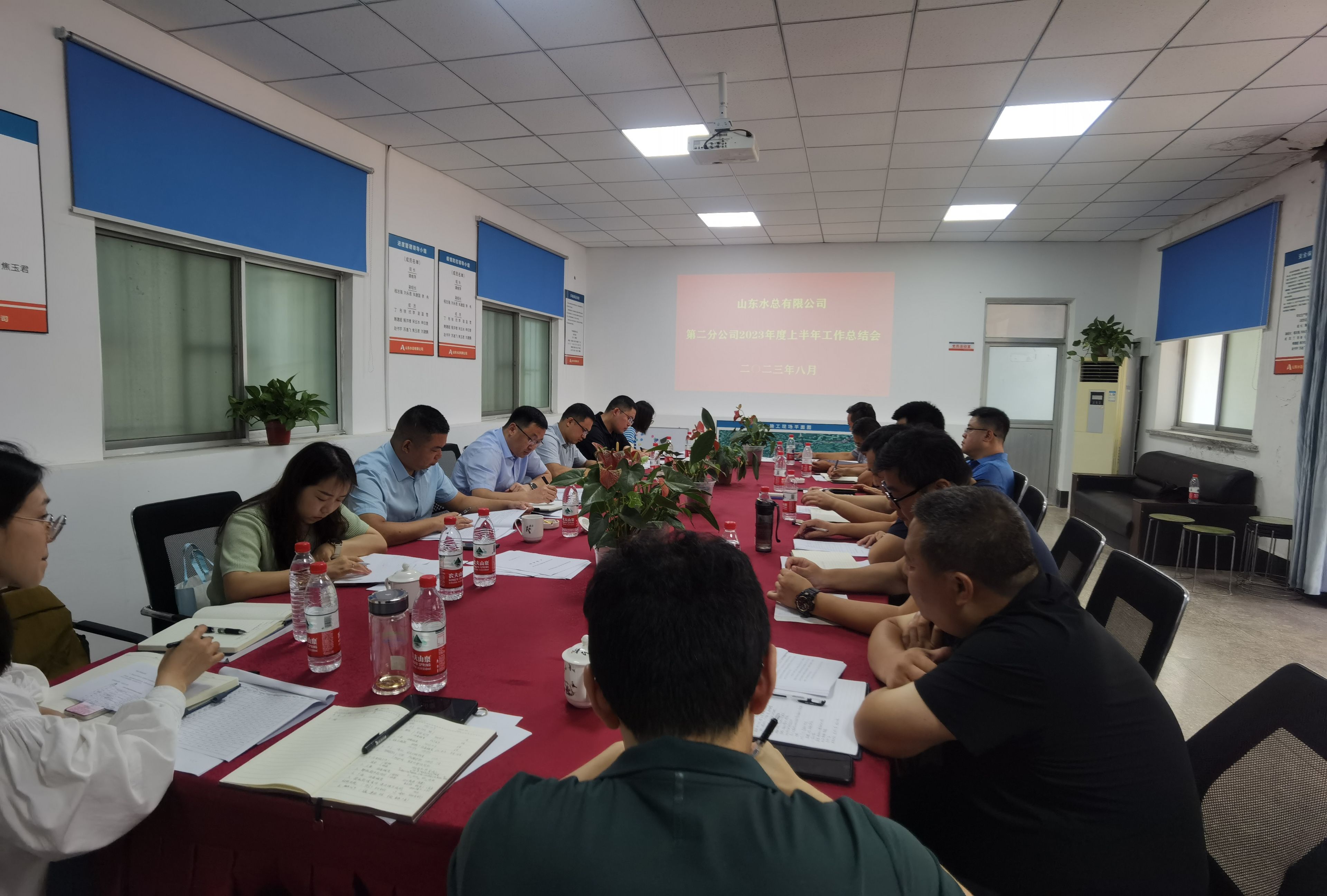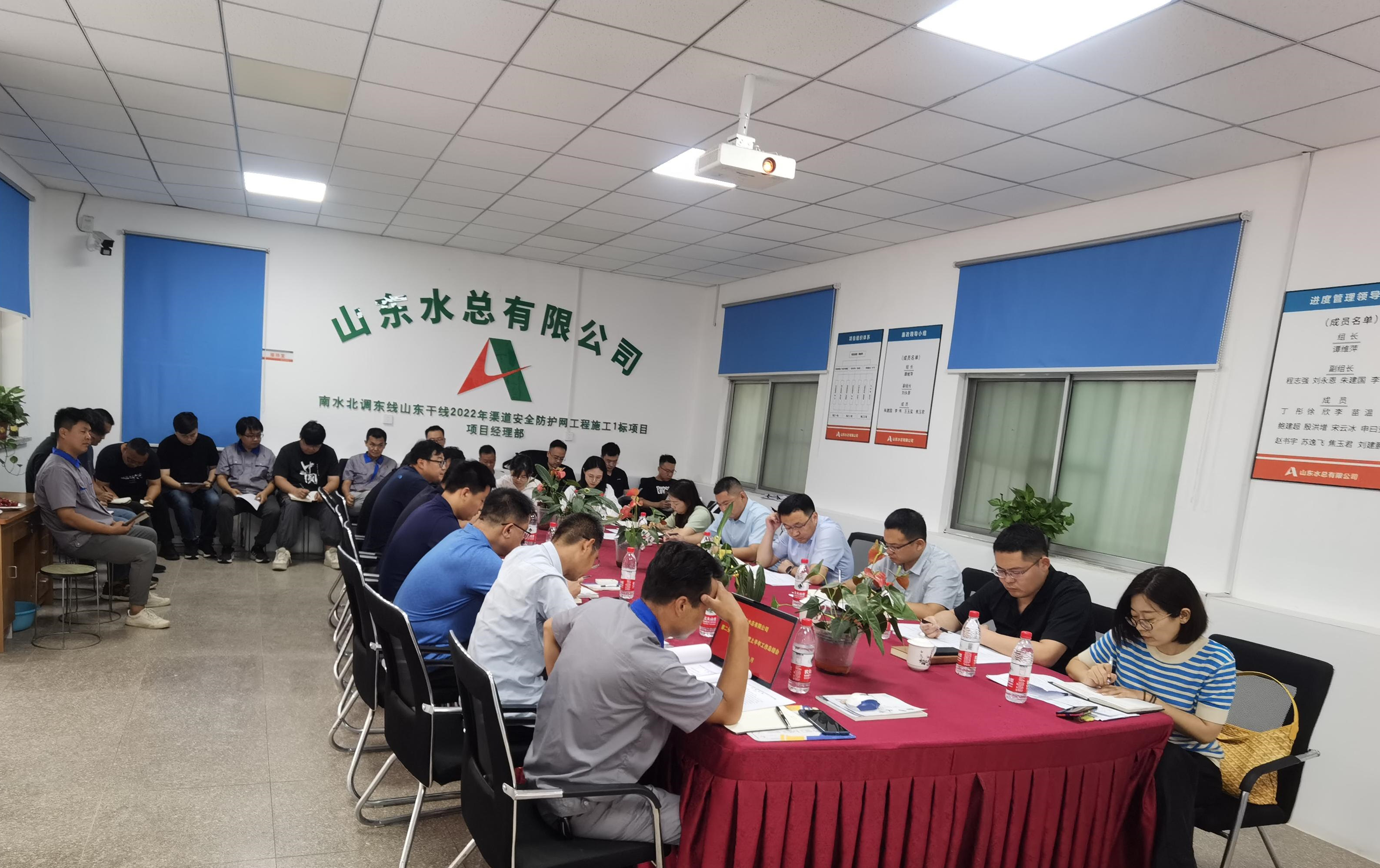 8月13日,第二分九游足球在南水北调山东干线2022年防护网工程项目部召开2023年度上半年工作会议,会议号召全体职工勠力同心,铆足干劲,锐意进取,为完成全年目标任务作出贡献。会议由分九游足球副总经理郝振超主持,领导班子、各科室负责人、各项目负责人、各项目机料和劳务专员参加会议。