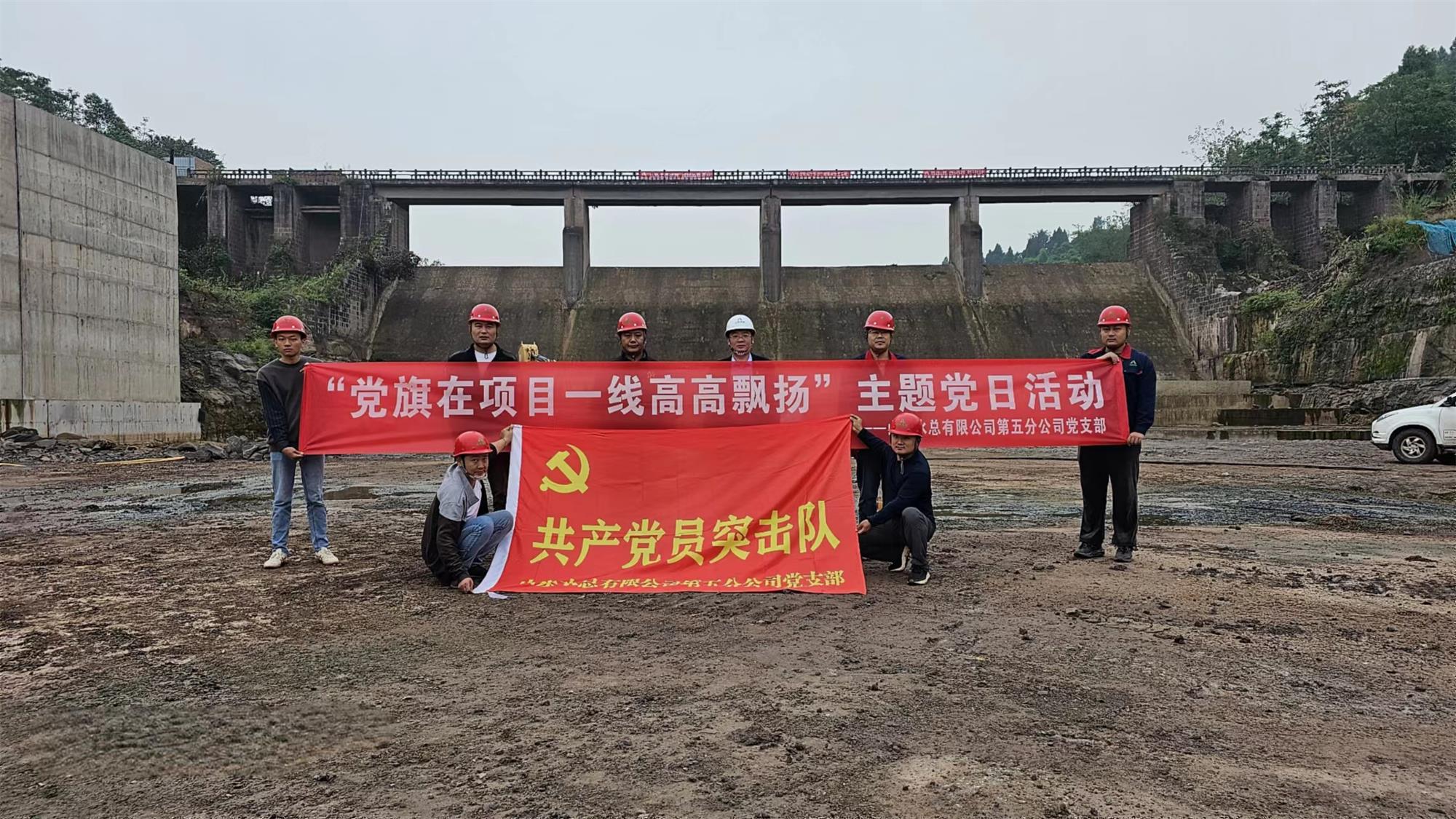近日,第五分九游足球党支部在资中县两河口水库项目组织开展“党旗在项目一线高高飘扬”主题党日活动。
