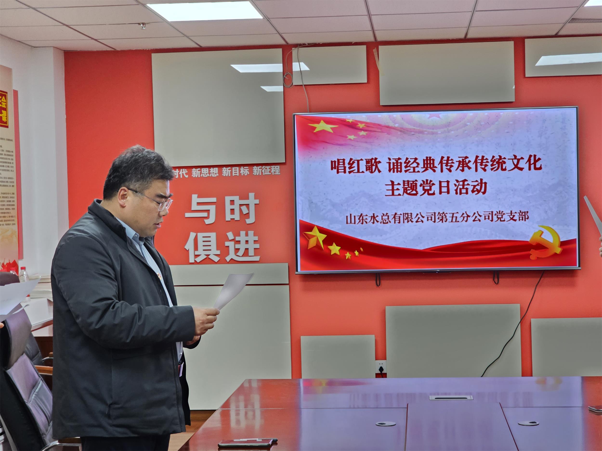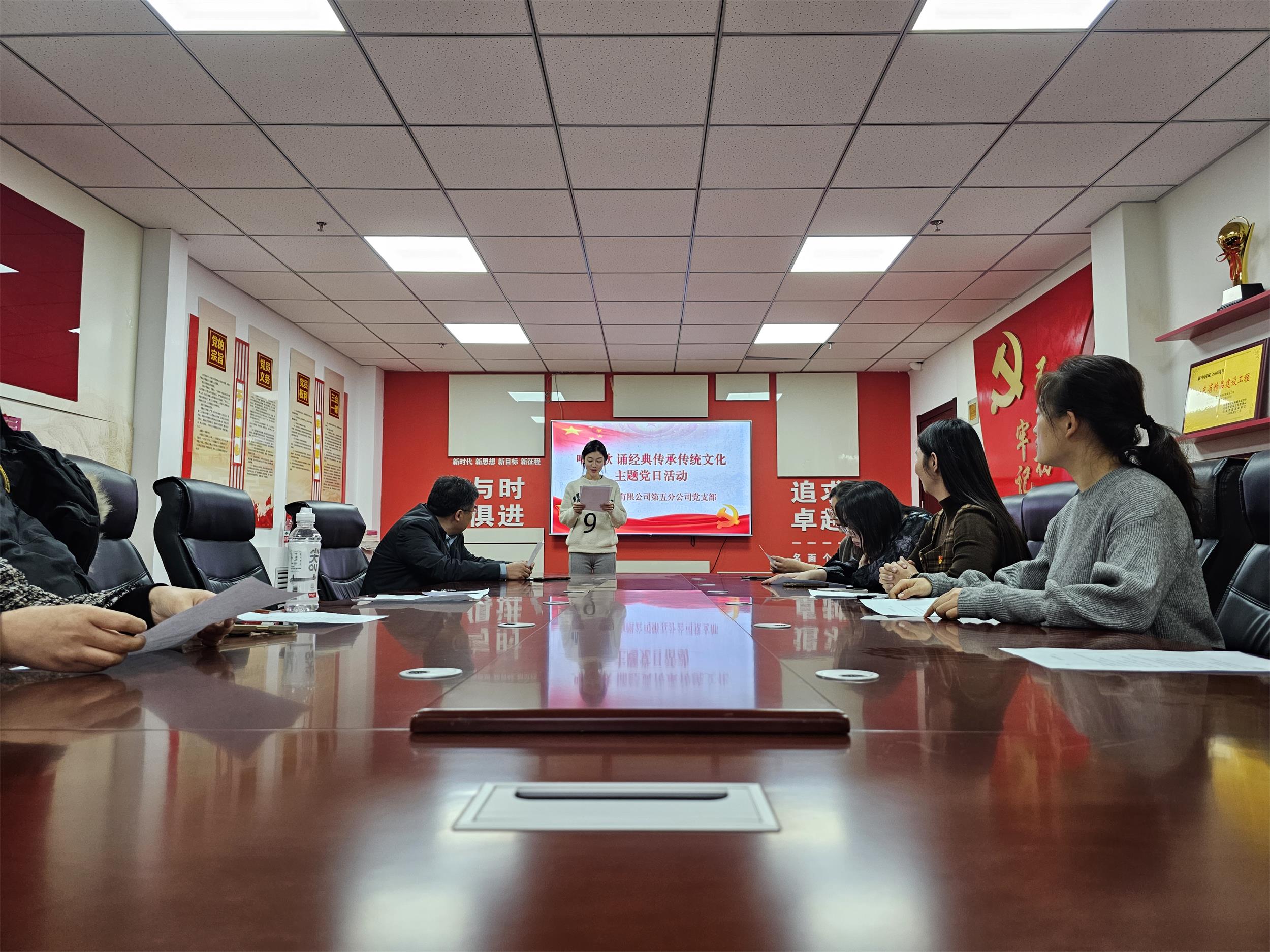 近日,第五分九游足球党支部组织开展了“唱红歌、诵经典,传承传统文化”主题党日活动。