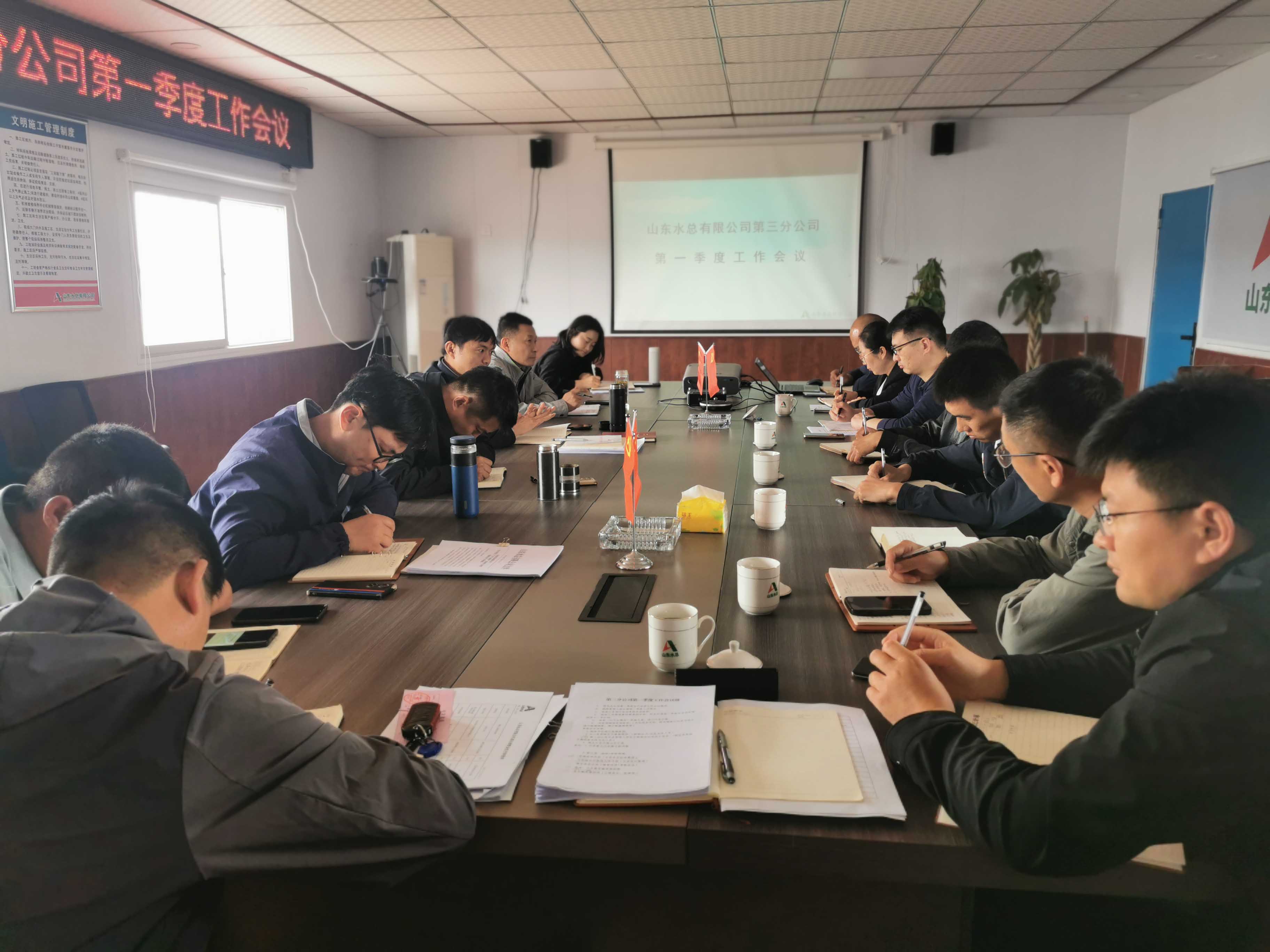 4月30日,第三分九游足球在沂南县岸堤水源项目召开2024年第一季度工作会议,会议由第三分九游足球党支部书记、总经理徐浩主持,副总经理、主任专家、督导专员、项目负责人及部分员工参加。