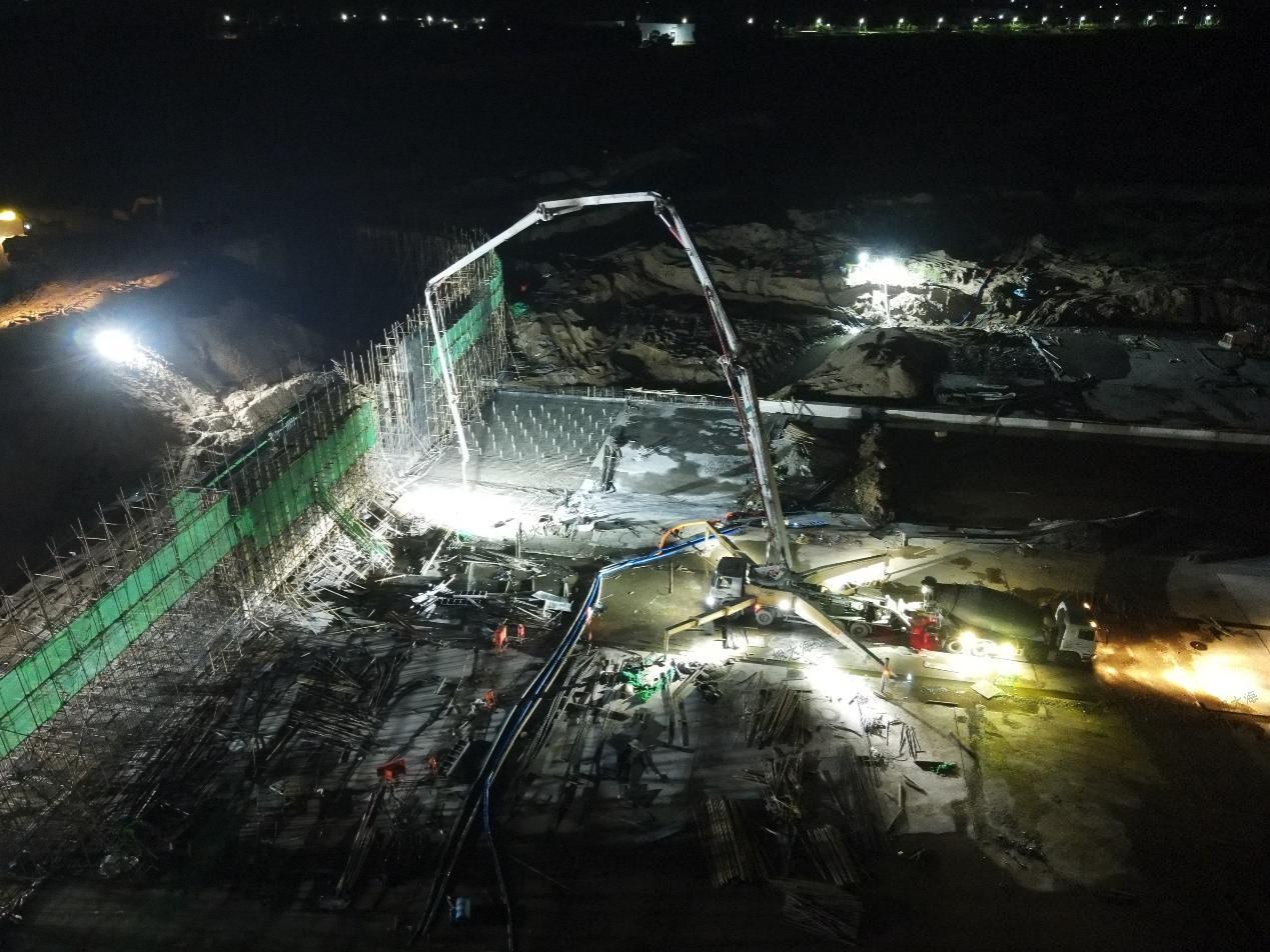 进入汛期以来,第三分九游足球承建的沂南岸堤水源项目现场一片繁忙施工景象。白天抢抓晴好天气,全力推进工程建设进度;夜间灯火通明加强巡查,确保施工质量不受影响。目前,项目水下部位工程已全部完成,左岸消力池的浇筑也接近尾声。