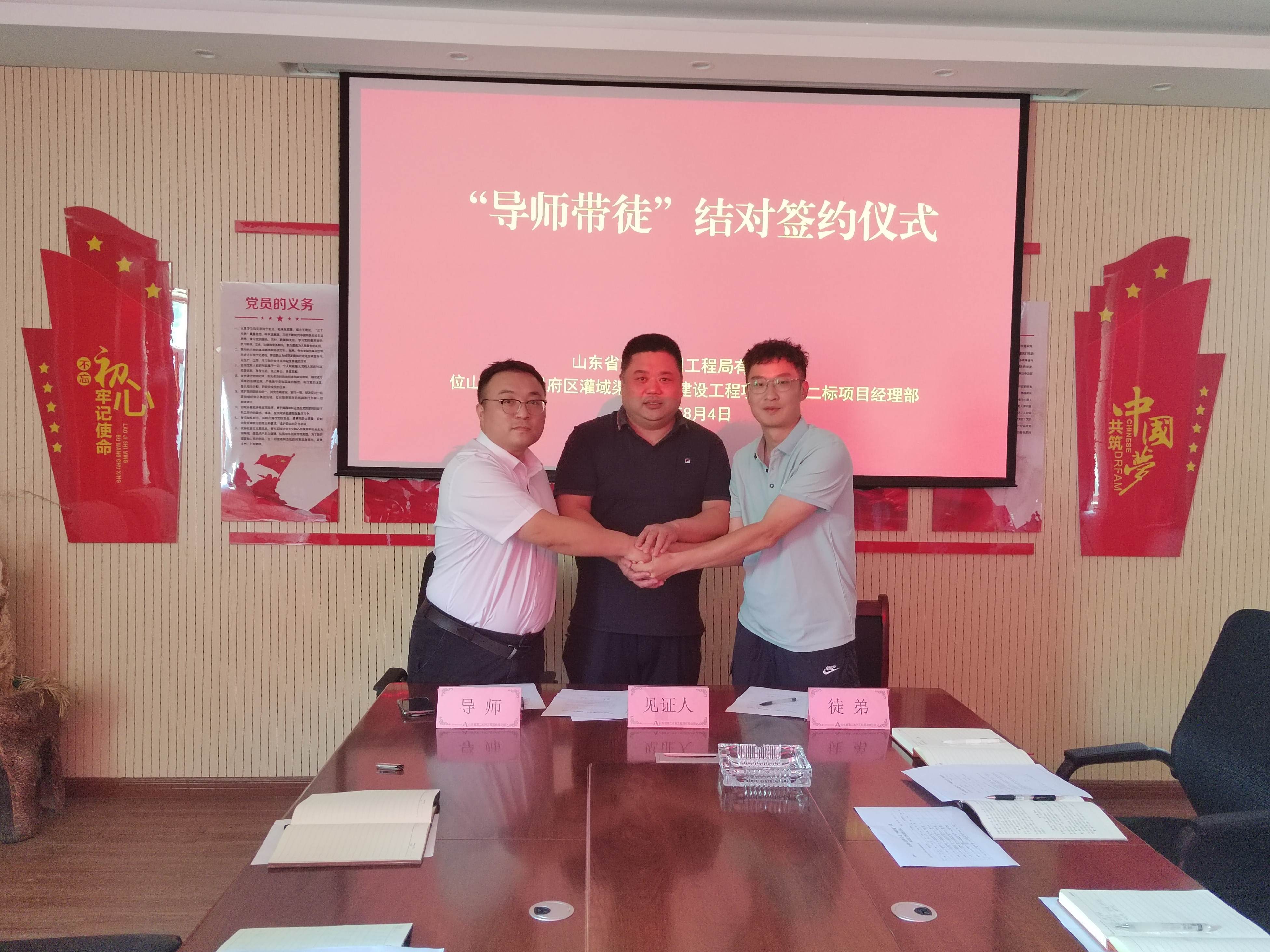 “师徒结对 薪火相继”- 二局有限九游足球位山灌区项目部举行“导师带徒”结对签约仪式