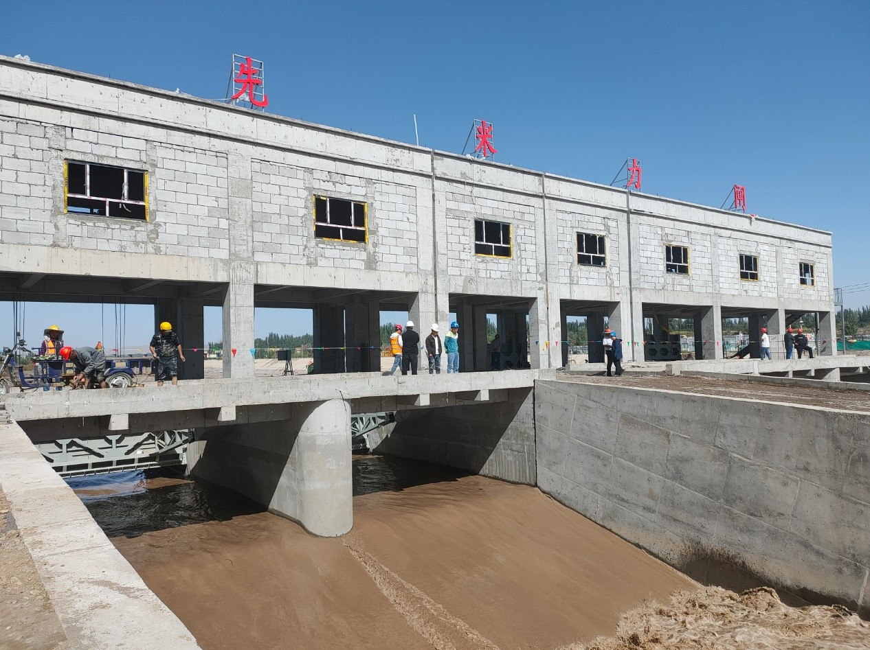 水工机械九游足球本月在新疆英吉沙县先米力除险加固工程中也取得了重要进展。完成了闸门埋件等金属结构的安装工作,安装人员日夜奋战,使得先米力闸的金属结构部分顺利通过三方无损检测、透光实验以及全程启闭实验。在业主、监理等项目干系方的共同见证下,先米力闸顺利通水。同时,金属结构的电气控制与自动化设备本月已到达施工现场,下一步,电气控制与自动化专业人员将进场进行安装。