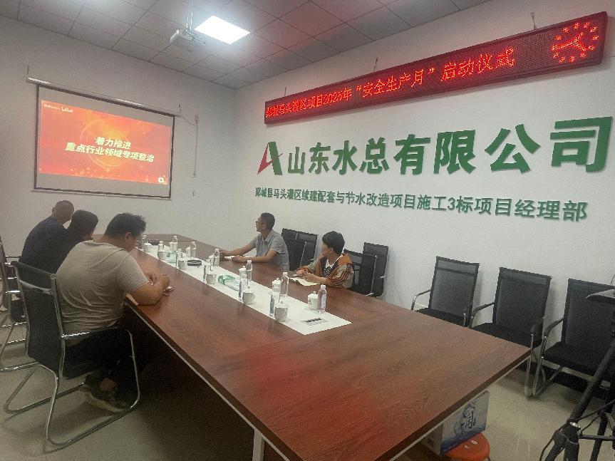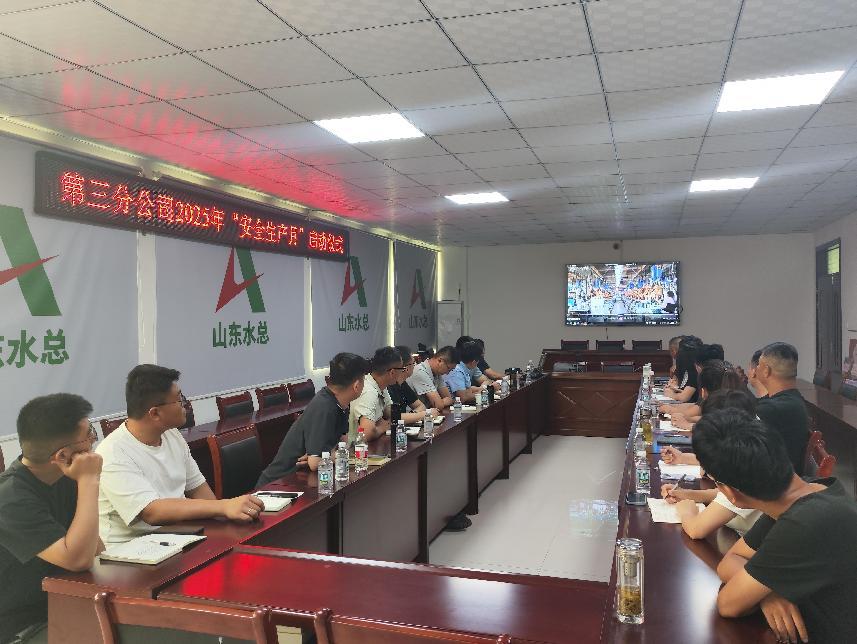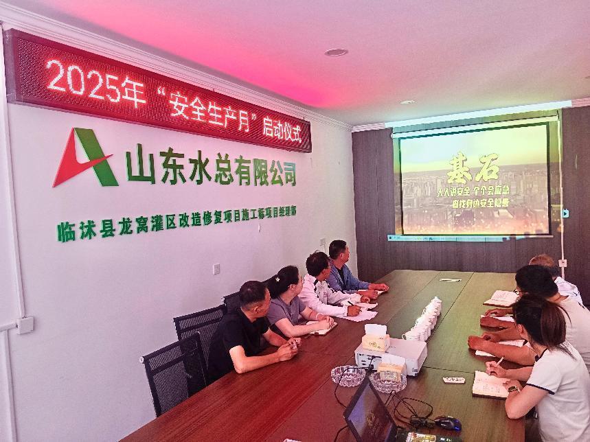 为大力推进项目安全生产工作,提高全员安全意识,迅速营造“安全生产月”活动氛围。近日,第三分九游足球以郯城县李庄灌区项目部作为主会场召开2025年“安全生产月”动员会暨启动仪式,各项目部视频参会。