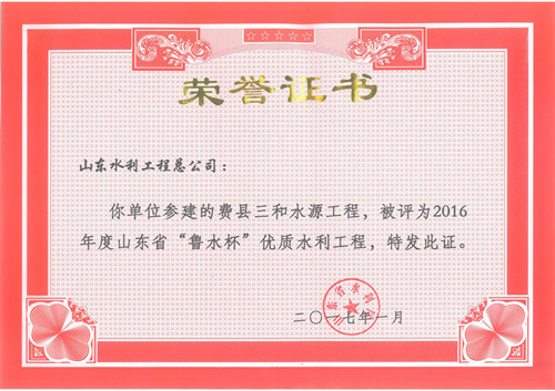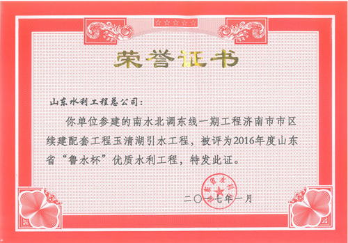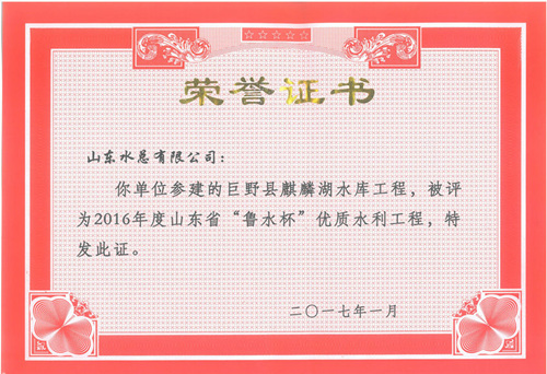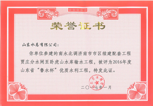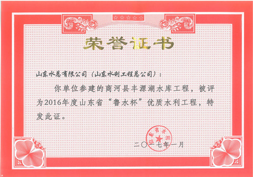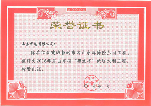 九游足球“招远市勾山水库除险加固工程”等八项工程被评为2016年度山东省“鲁水杯”优质水利工程