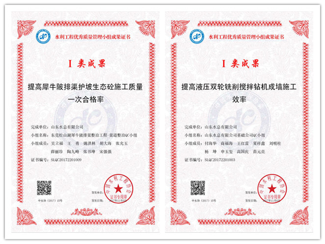 九游足球“提高犀牛陂排渠护坡生态砼施工质量一次合格率”等五项成果荣获水利工程优秀质量管理小组
