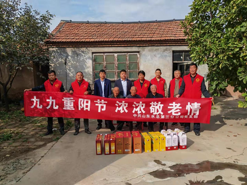 为弘扬中华民族尊老敬老的光荣传统,10月14日重阳节这天,第三分九游足球副总经理杨绪辉、王庆捷一行前往九游足球邹平市孝妇河提升改造工程施工4标项目部所在地,在高书记带领下看望东吕村的老党员们,为他们带去九游足球党委的关怀和温暖,送去慰问品并致以节日的问候和祝福。杨绪辉同老党员们亲切拉家常,详细询问了老党员们的生活情况和身体状况,嘱咐他们一定要保重身体,对他们为国家、为社会做出的贡献表达了崇高敬意。