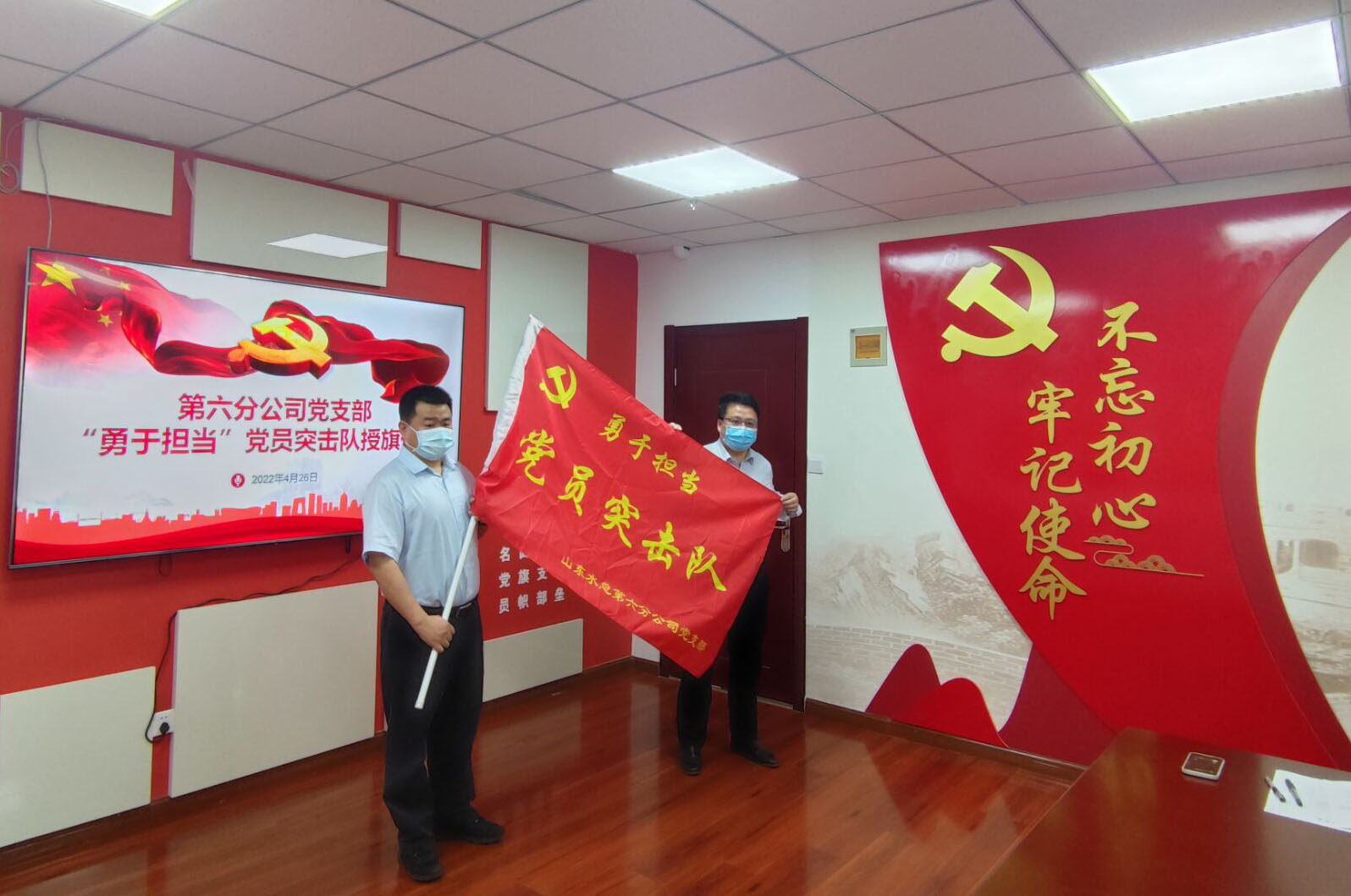 4月26日上午,第六分九游足球举行“勇于担当党员突击队”授旗仪式,以动员激励党员在疫情防控、生产经营和安全生产工作中更好发挥先锋模范作用。