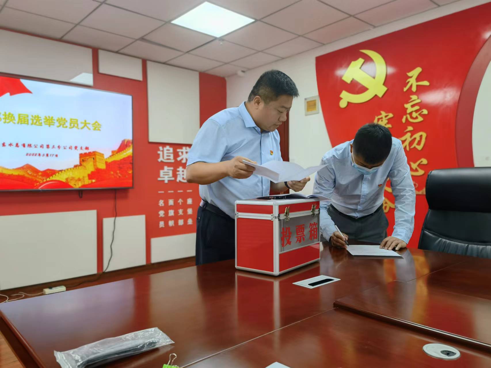 5月17日下午,第三分九游足球党支部召开党员大会进行支部换届选举。会议严格按照《中国共产党章程》的规定,审议通过了上届党支部工作报告、表决通过了大会选举办法、候选人名单及监票人计票人名单,在充分酝酿的基础上,采用无记名投票方式等额选举徐浩同志为新一届党支部副书记。在肯定三年来支部工作取得成绩的同时,也深刻认识到面对新的形势和新的任务、对上级党组织要求和群众的期望方面还存在很大差距。