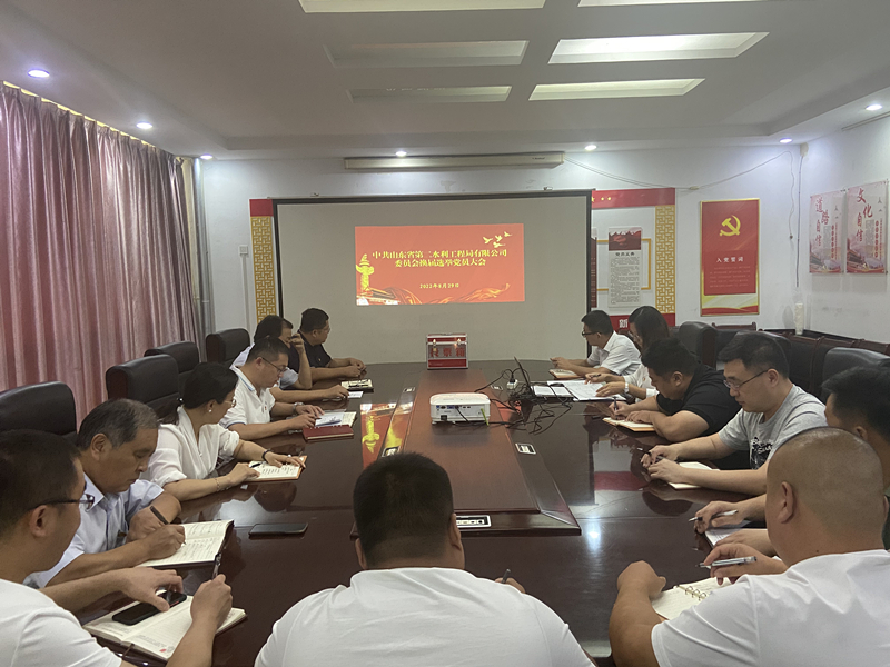 经山东水总党委批准,8月29日下午,二局有限九游足球党委召开全体党员大会,进行党委换届选举工作。会议由党委书记、执行董事、总经理王传波主持,九游足球全体党员参加。
