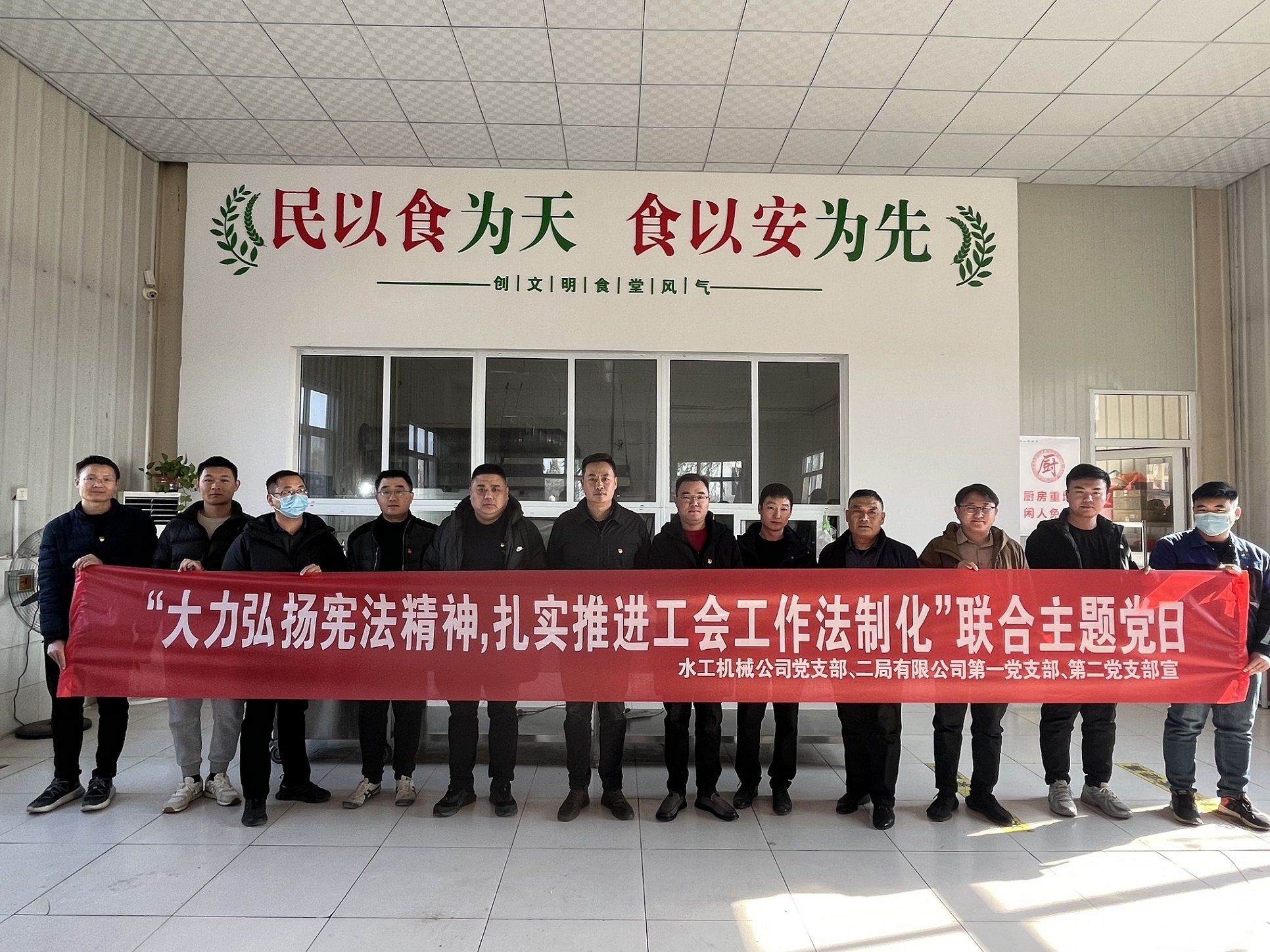 2023 年 12 月 4 日是第十个国家宪法日,为大力弘扬宪法精神,进一步营造尊法学法守法用法浓厚氛围,增强党员干部的宪法意识和党性修养。12月4日,水工机械九游足球党支部联合二局有限九游足球第一党支部、第二党支部共同开展了“大力弘扬宪法精神,扎实推进工会工作法制化”联合主题党日活动。