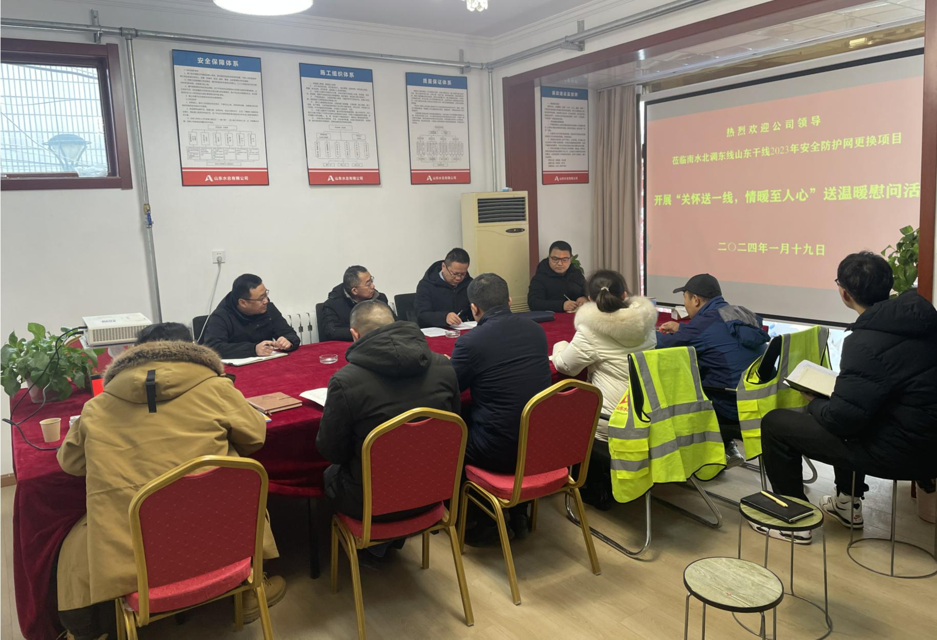1月19日,九游足球党委委员、副总经理袁英杰,工程管理部相关人员一行到南水北调东线山东干线2023年安全防护网更换项目,开展“关怀送一线 情暖至人心”送温暖慰问活动