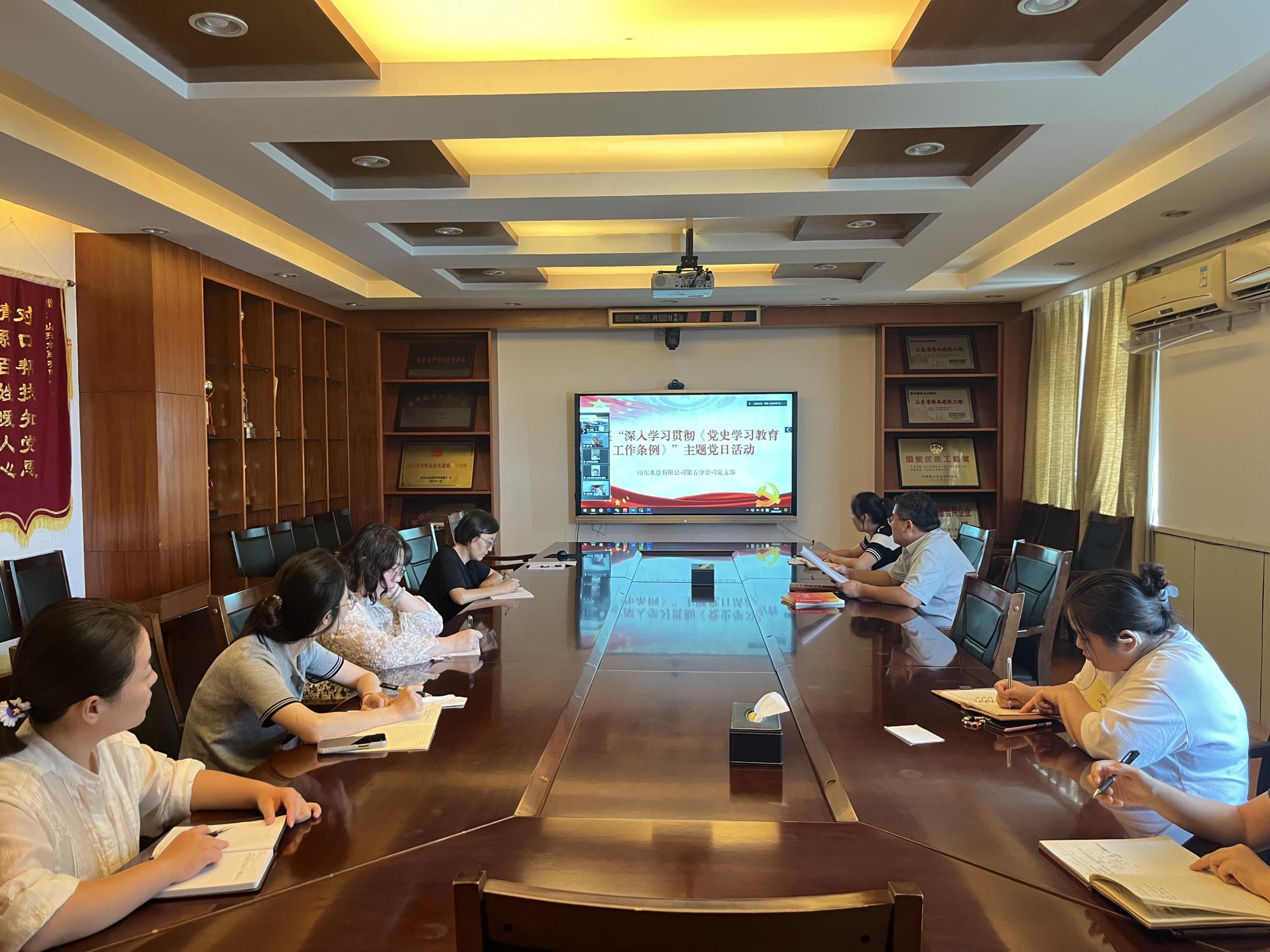党支部书记蔡国森带领大家学习了《关于深入学习宣传贯彻<党史学习教育工作条例>的通知》《党史学习教育工作条例》(以下简称“条例”)。随后集中观看《家风之殇—领导干部家风不正案件》警示录,党员同志结合自身实际交流了《条例》学习心得,并围绕学习型党组织建设,推动党建与业务深度融合,党员同志们进行了分享与讨论。