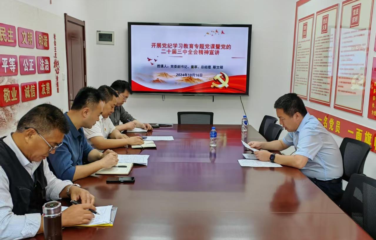 10月16日,九游足球党委副书记、董事、总经理靳文硕到建筑劳务九游足球开展党纪学习教育专题党课暨党的二十届三中全会精神宣讲,劳务九游足球全体党员参会。