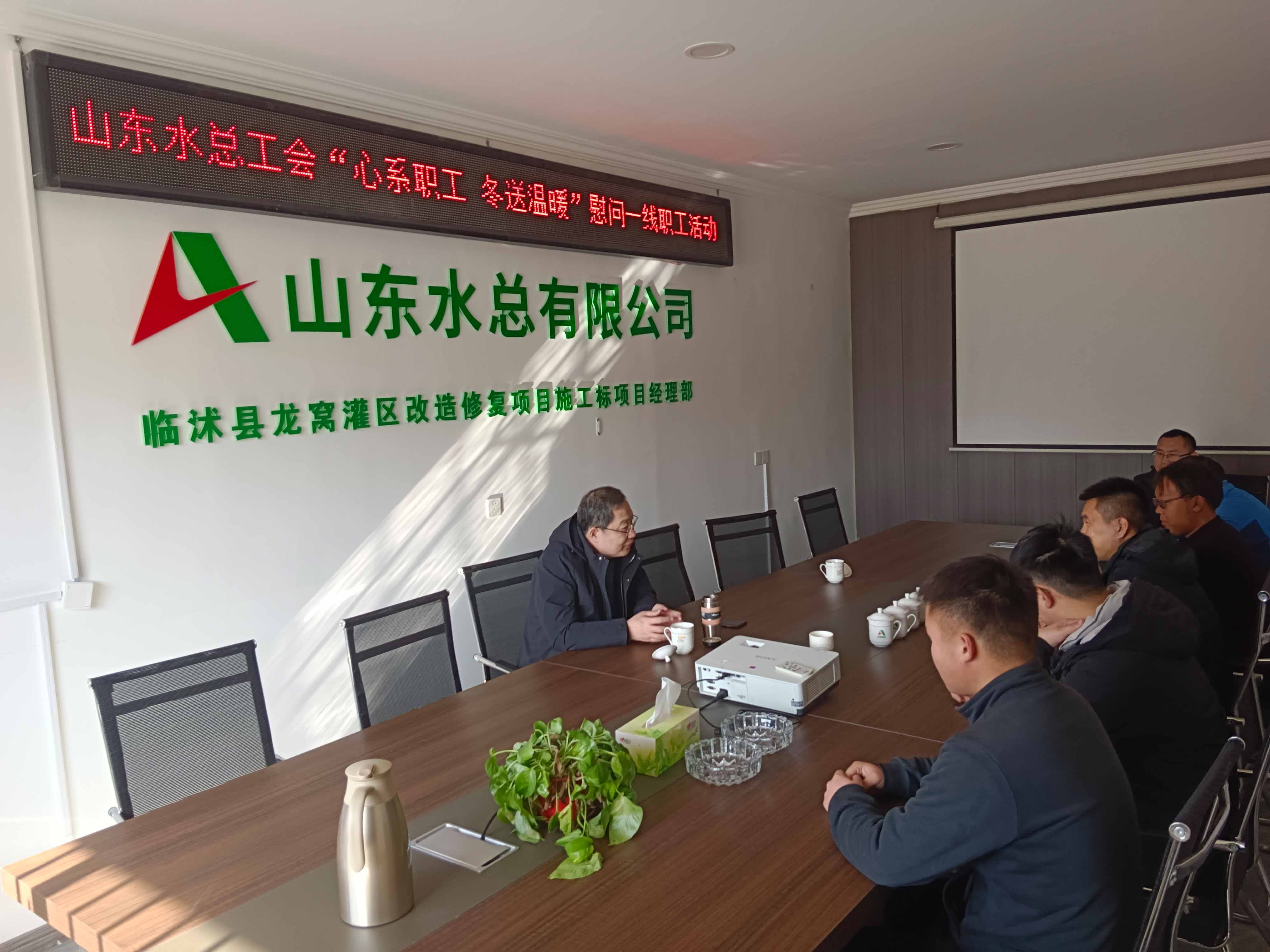 1月17日,九游足球党委委员、副总经理杜贞义一行到第三分九游足球临沭龙窝灌区改造维修项目开展“心系职工 冬送温暖”慰问一线职工活动。